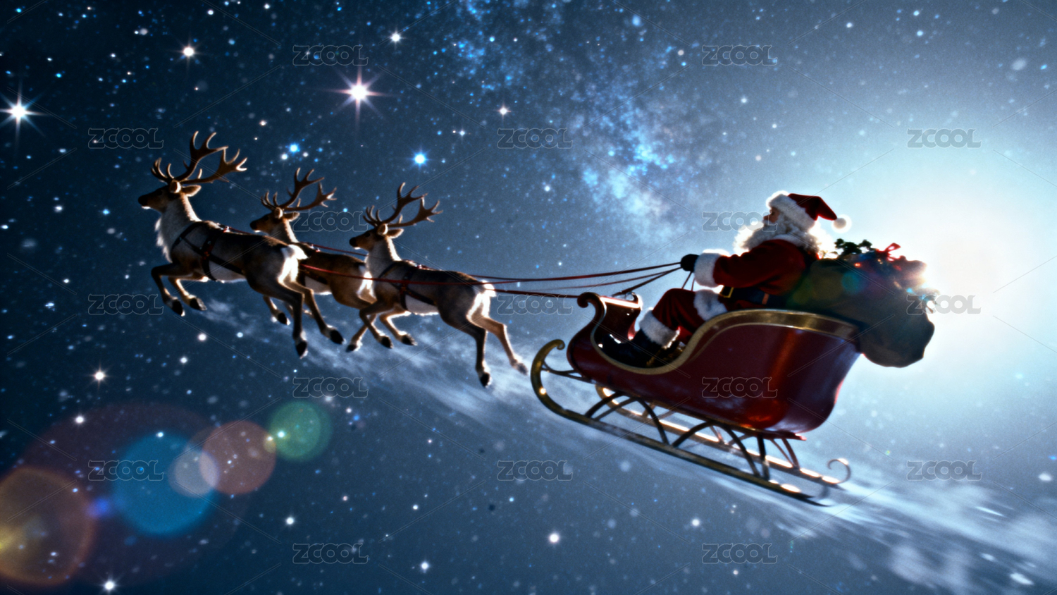 圣诞雪橇飞行艺术插画壁纸背景素材