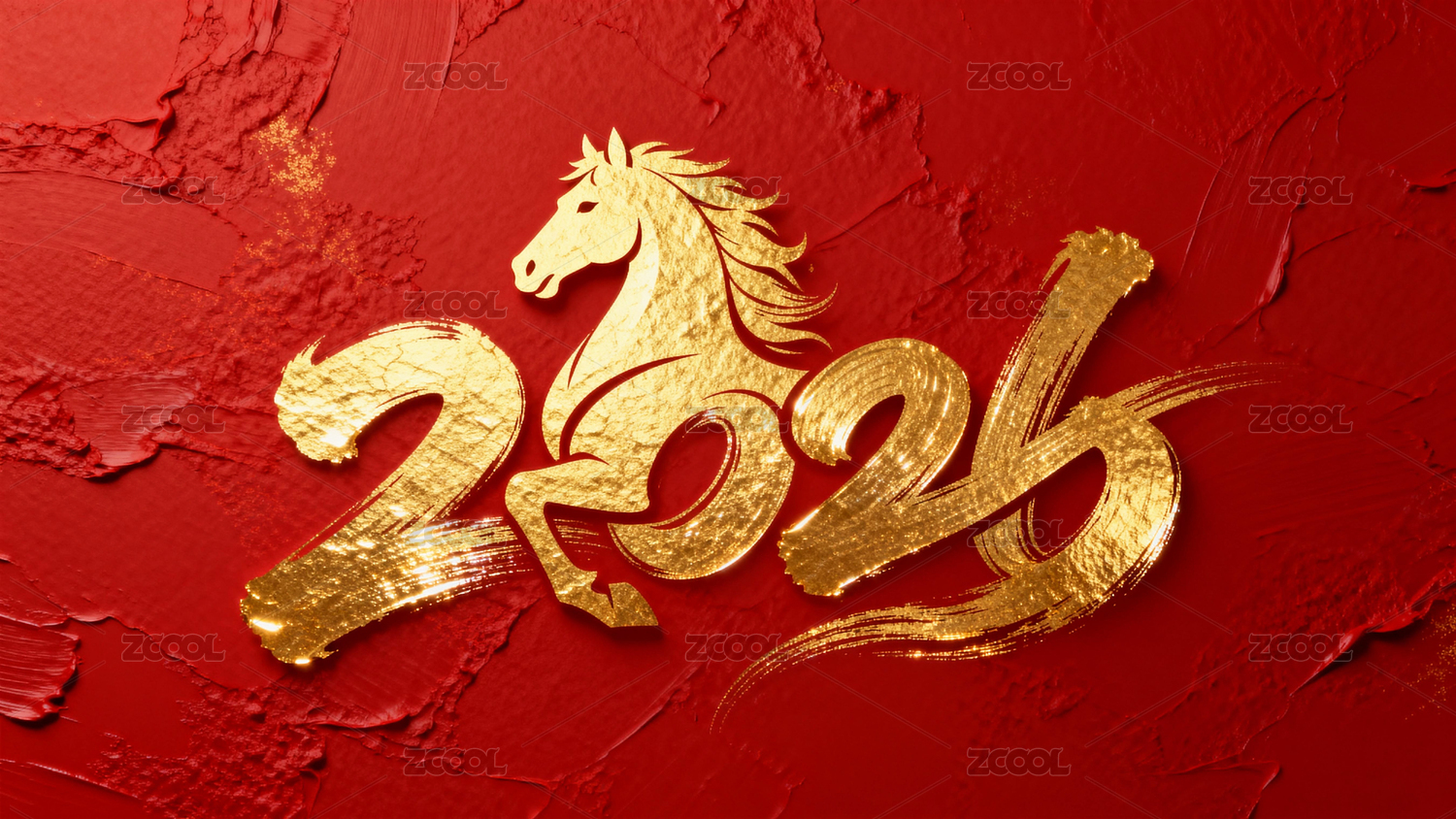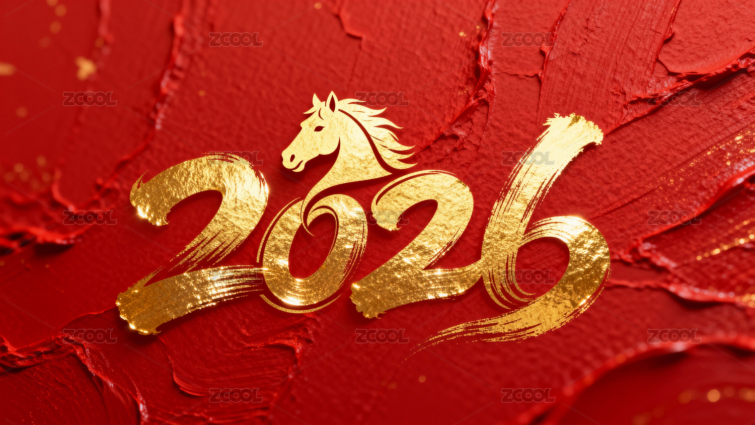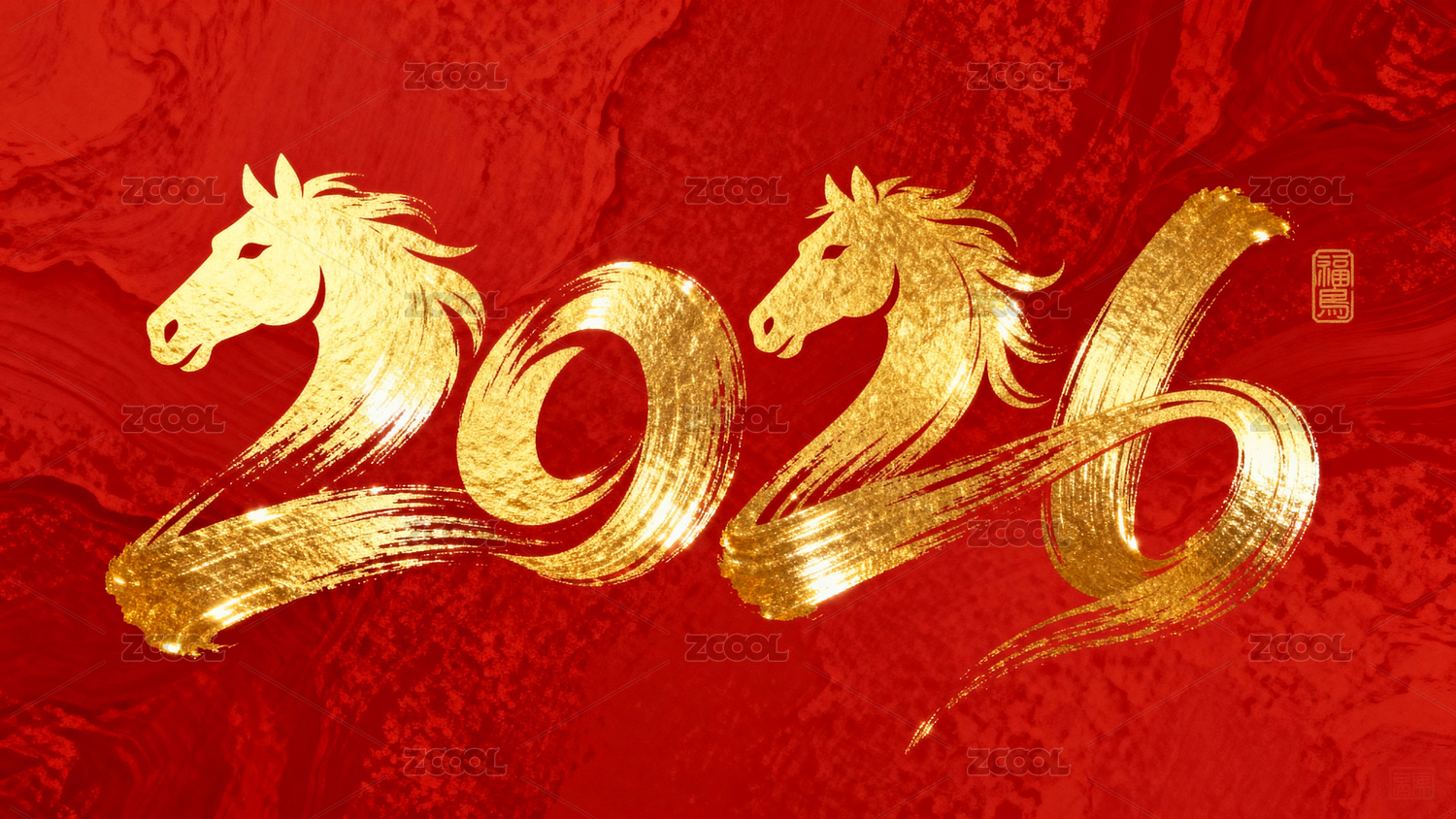 马,2026,马年,动物,生肖,艺术字,红色,金色,书法,毛笔字