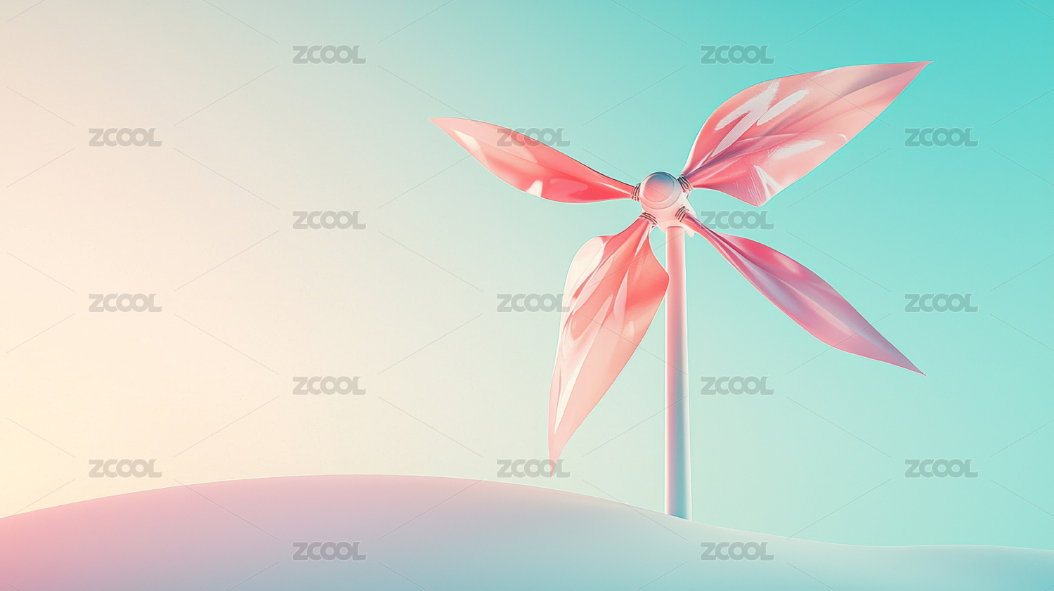 蓝天下的粉色风车