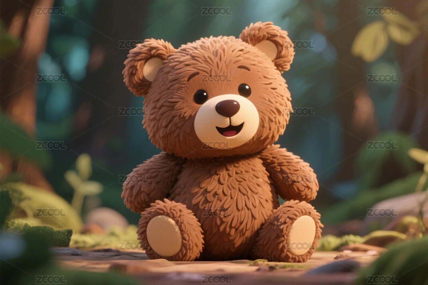 卡通,动物,童趣,可爱,色彩,温馨,插画,草地,天空,自然