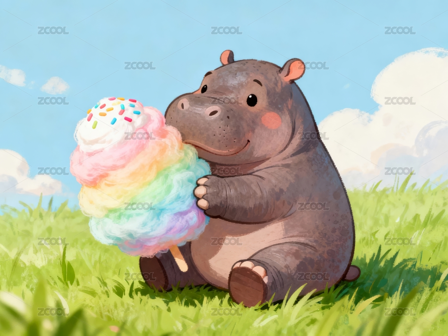 卡通,绘画,动物,可爱,插画,草地,天空,云朵,自然,户外