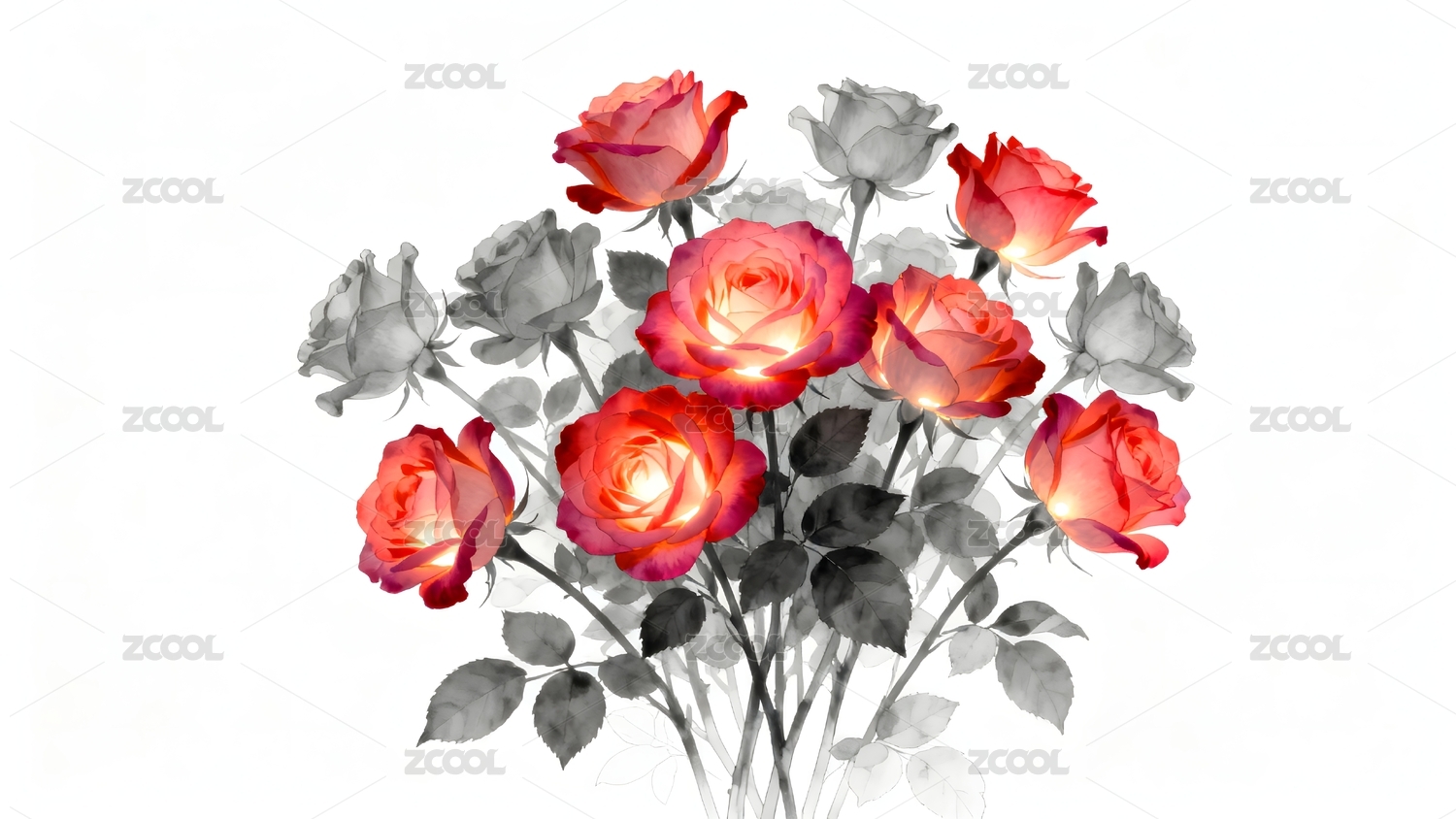 红玫瑰与灰调背景的艺术组合