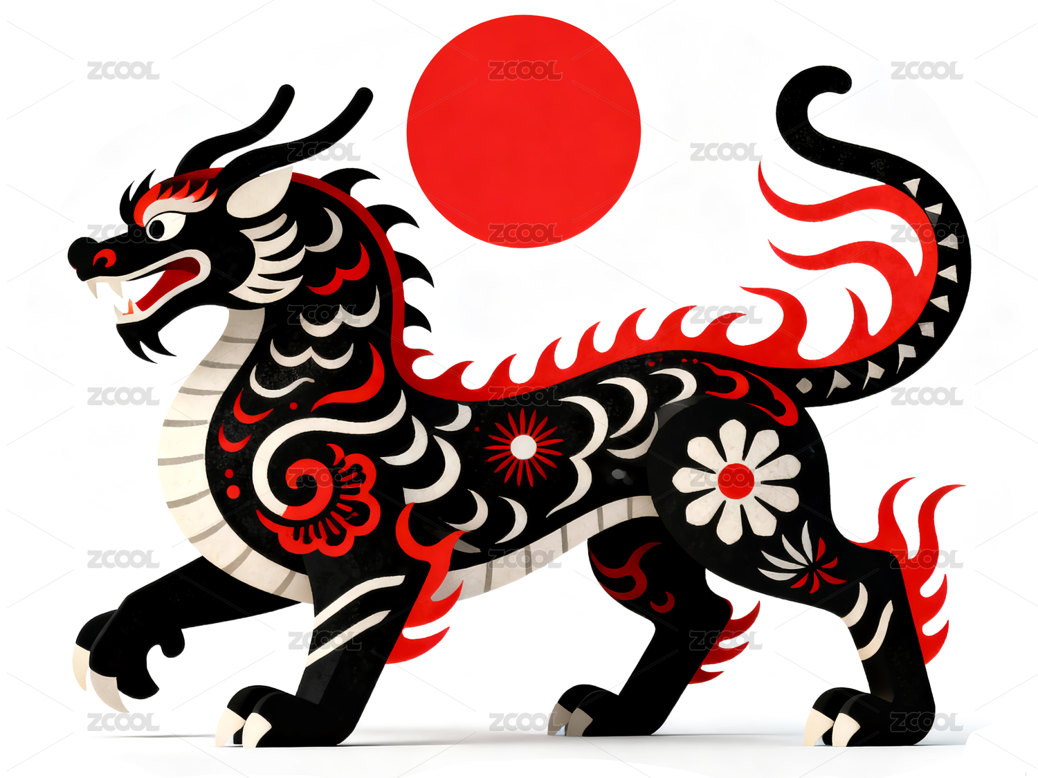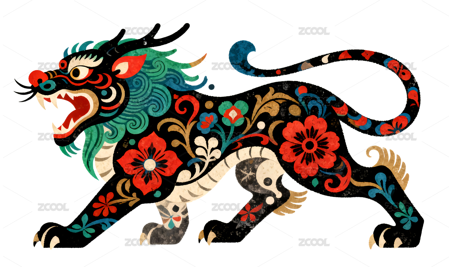传统风格的国风神兽麒麟图案
