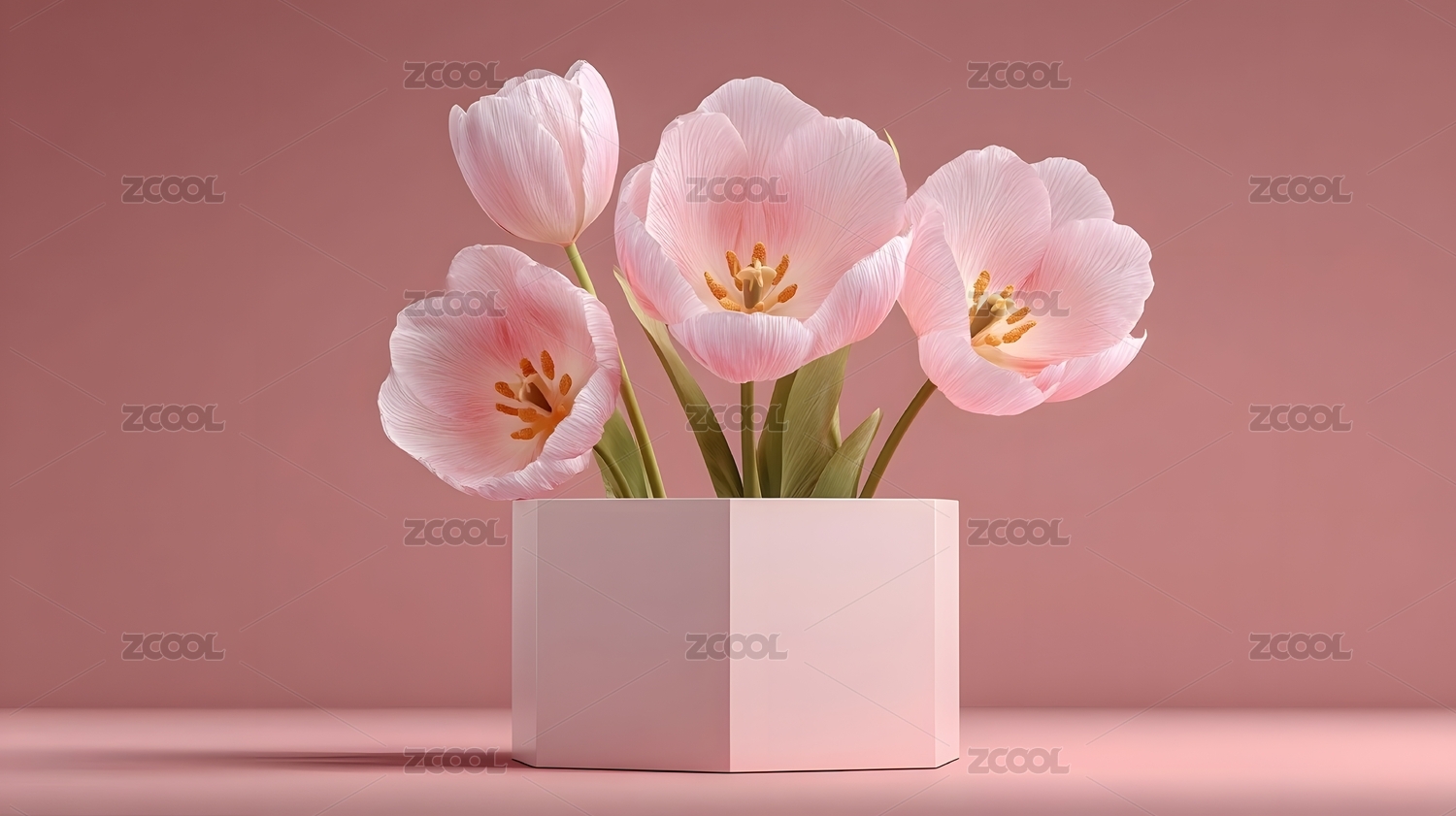 粉色郁金香花束优雅绽放