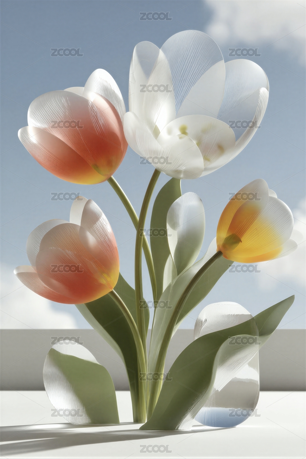 玻璃质感郁金香花卉