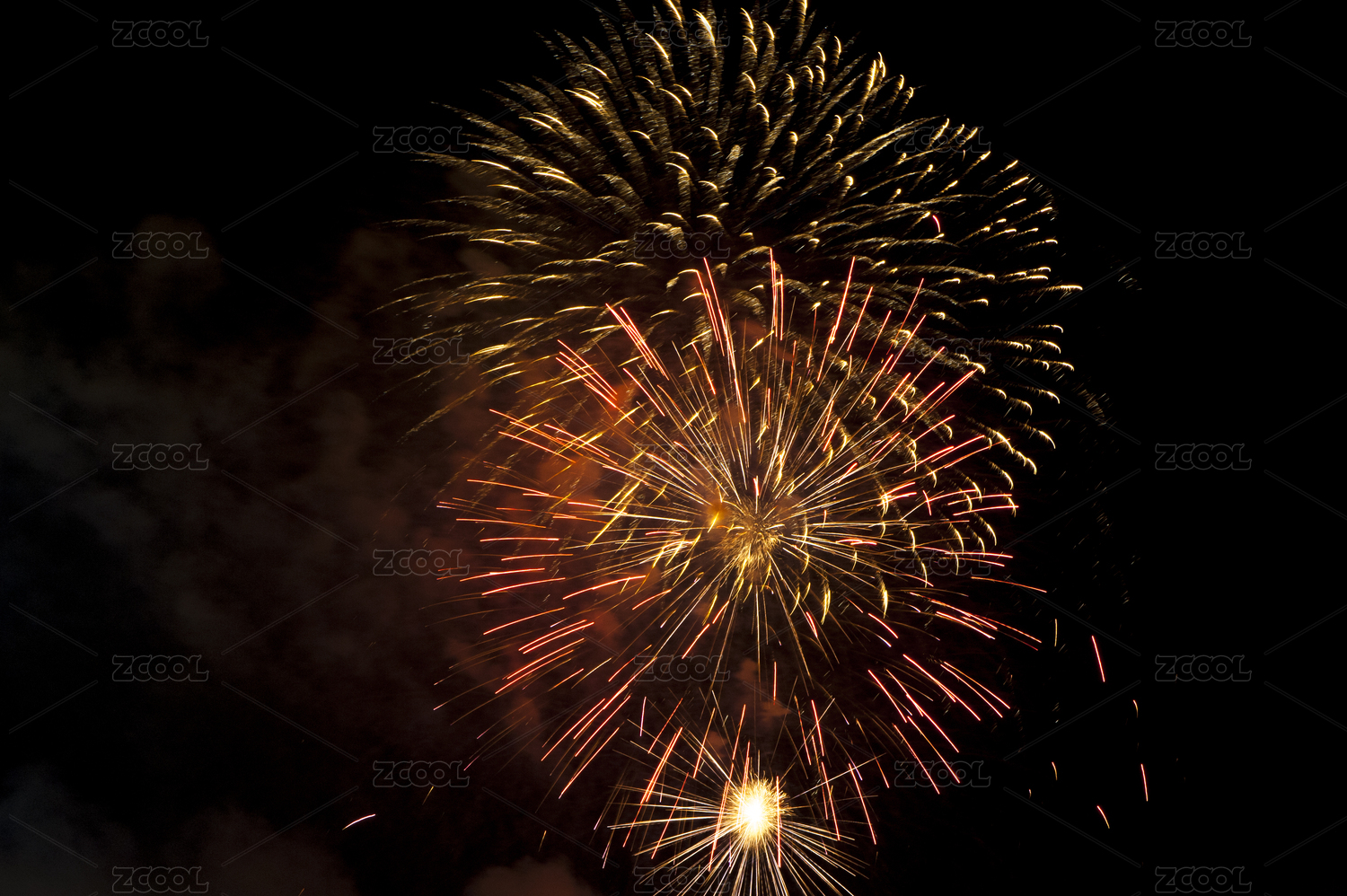 天空,橙色,夜空,烟花,红色,绽放,美丽,节日,庆典,光亮
