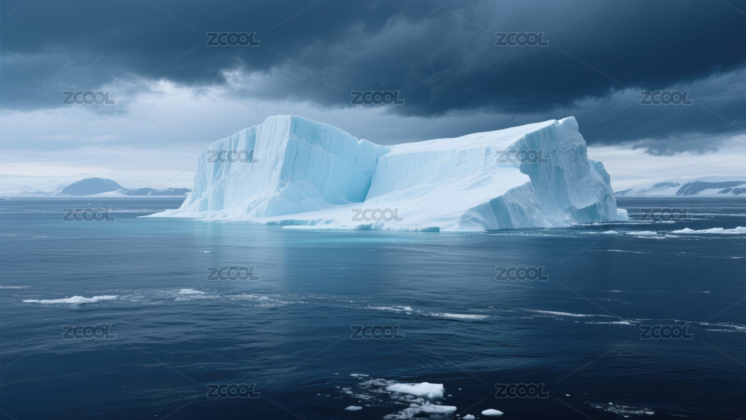 巨大冰山漂浮海洋