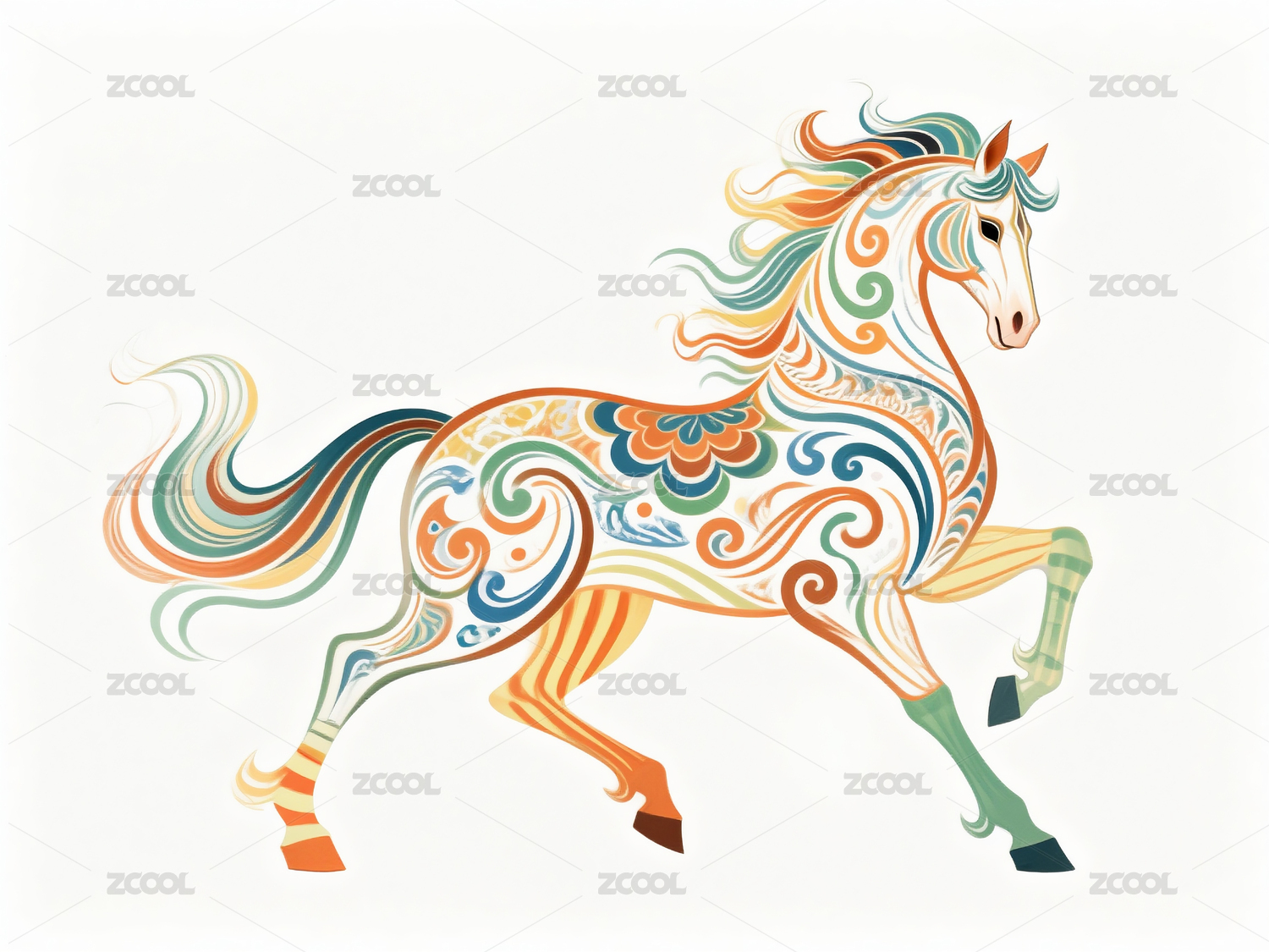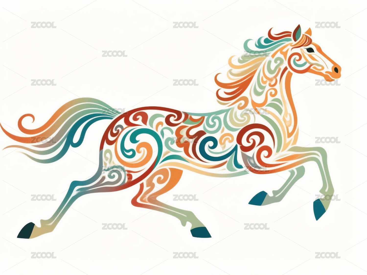 彩色装饰艺术马奔跑姿态马年