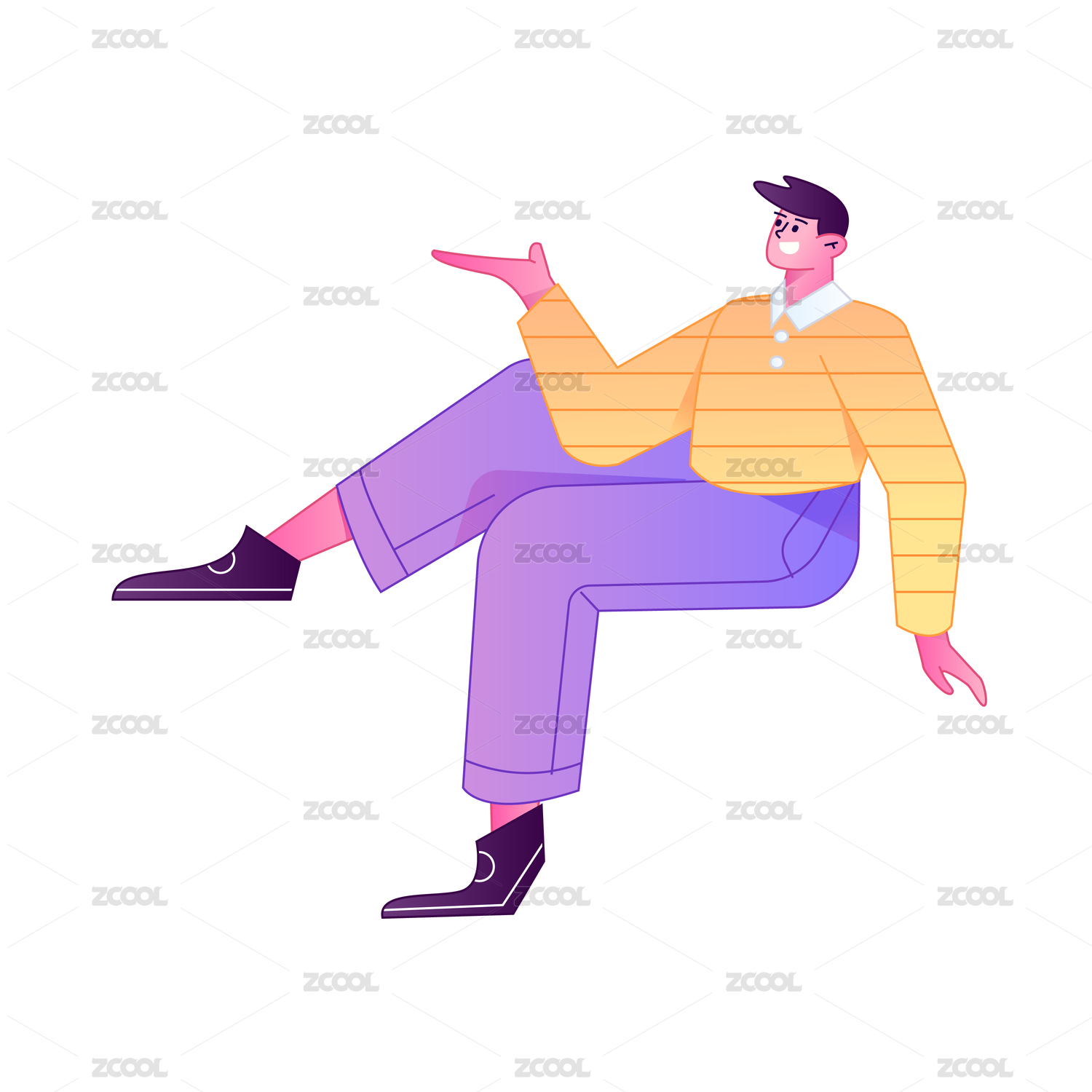 人物站姿肢体动作自信展示矢量扁平渐变插画