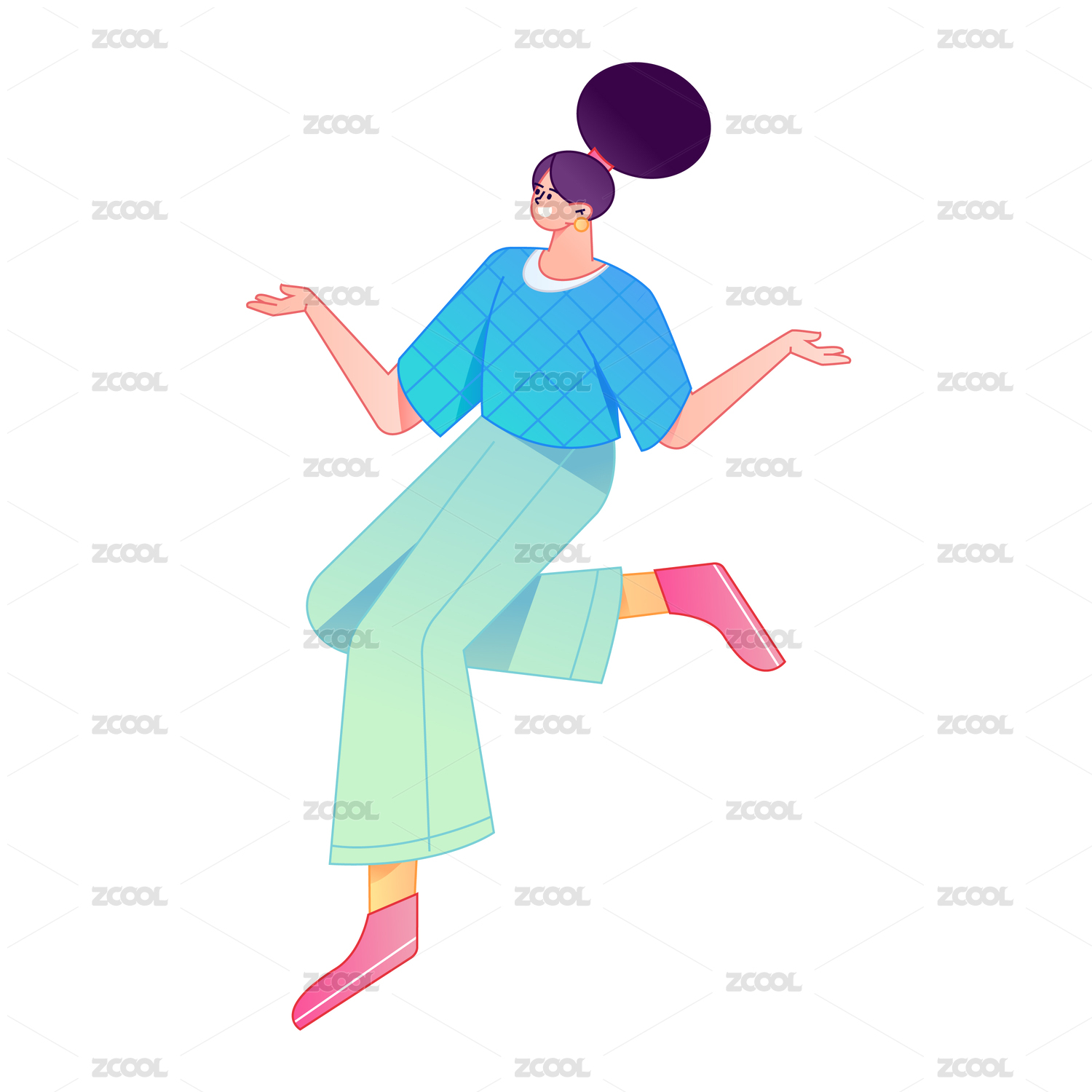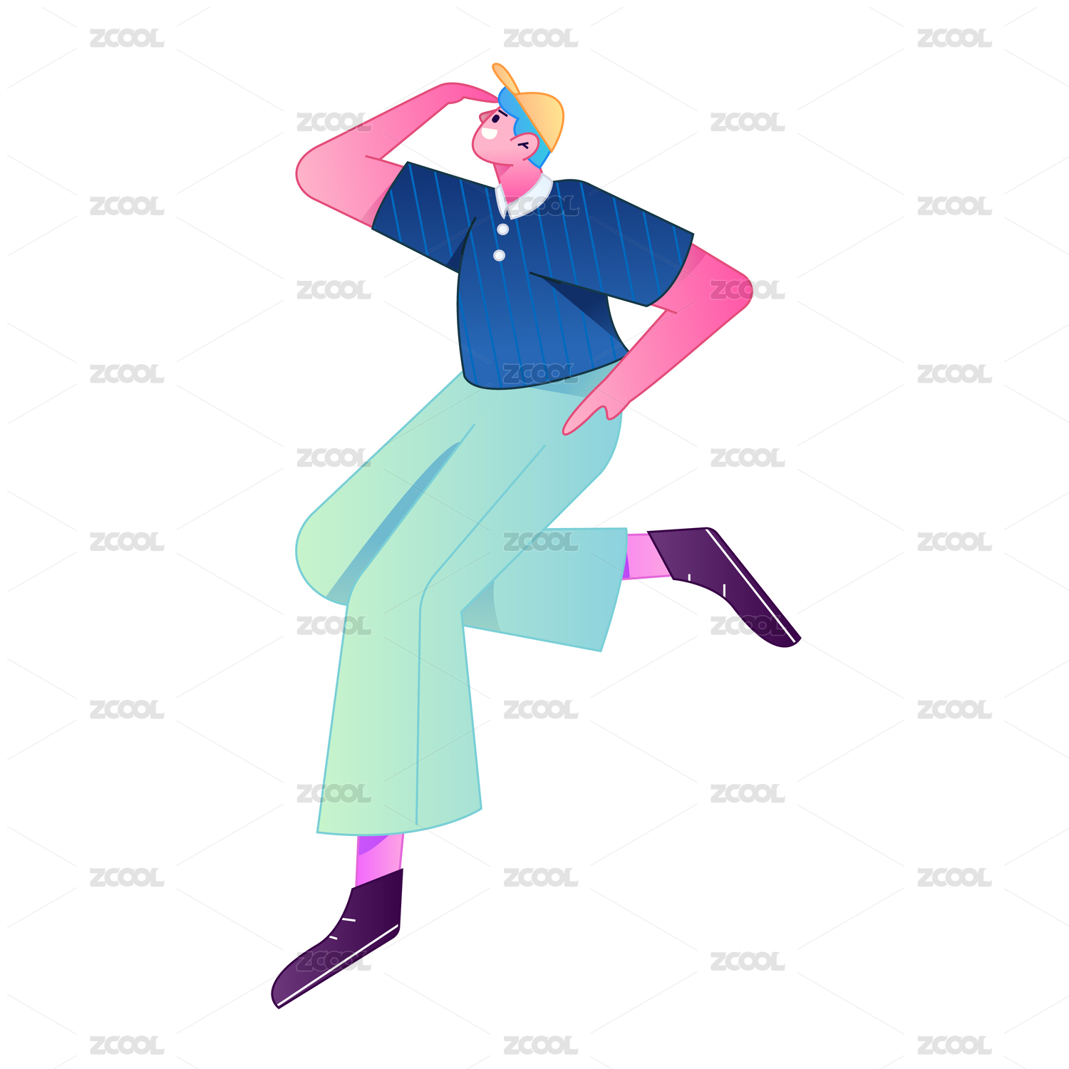 人物站姿肢体动作自信展示矢量扁平渐变插画