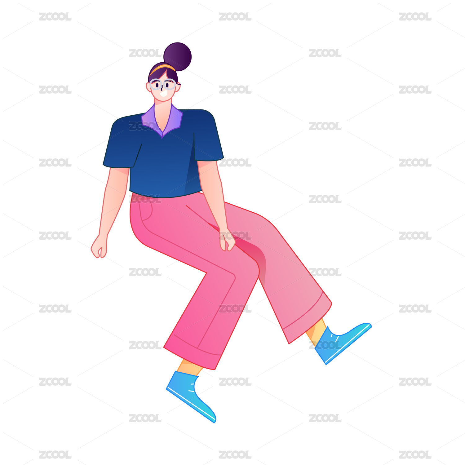 人物坐姿造型互联网矢量扁平渐变插画