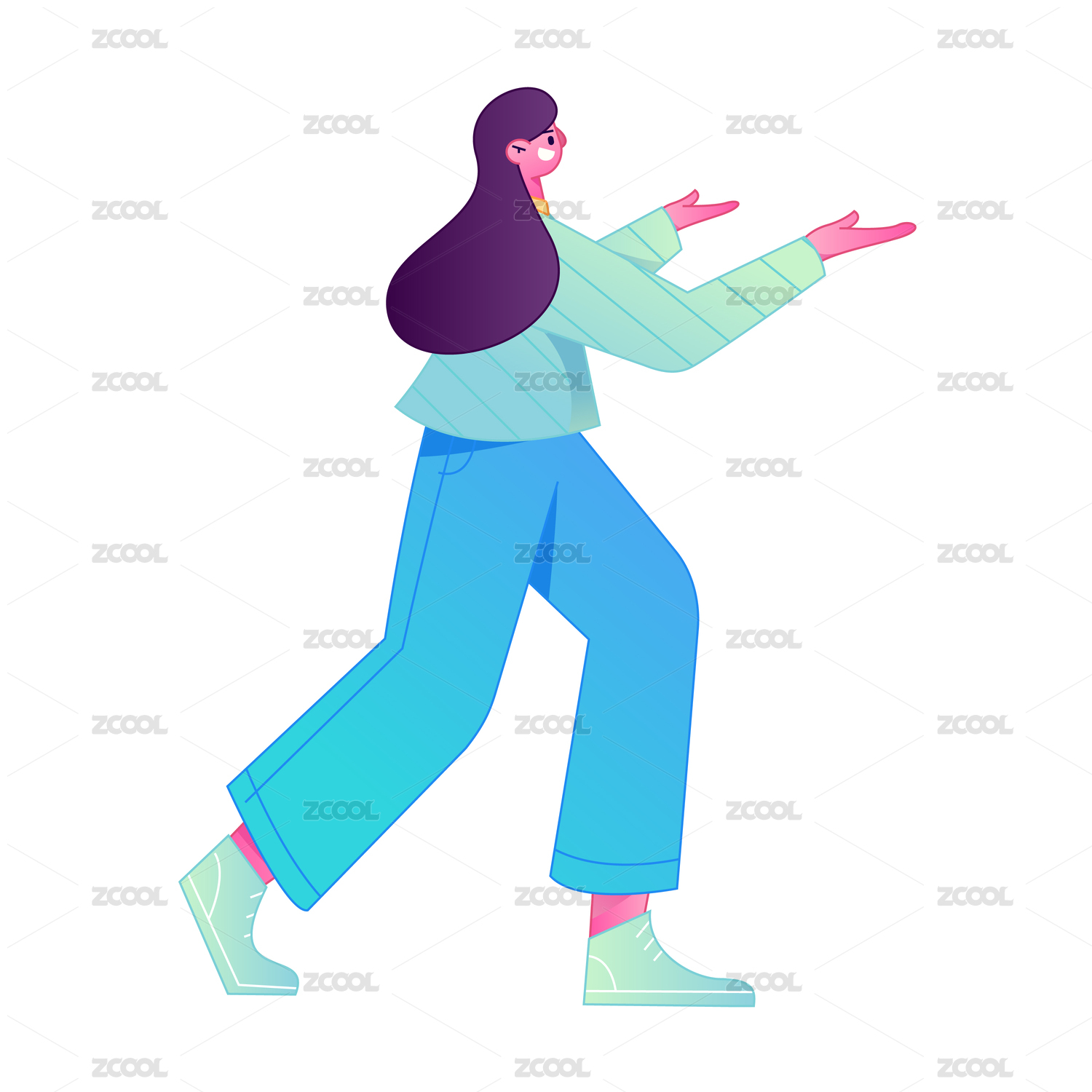 人物站姿肢体动作自信展示矢量扁平渐变插画
