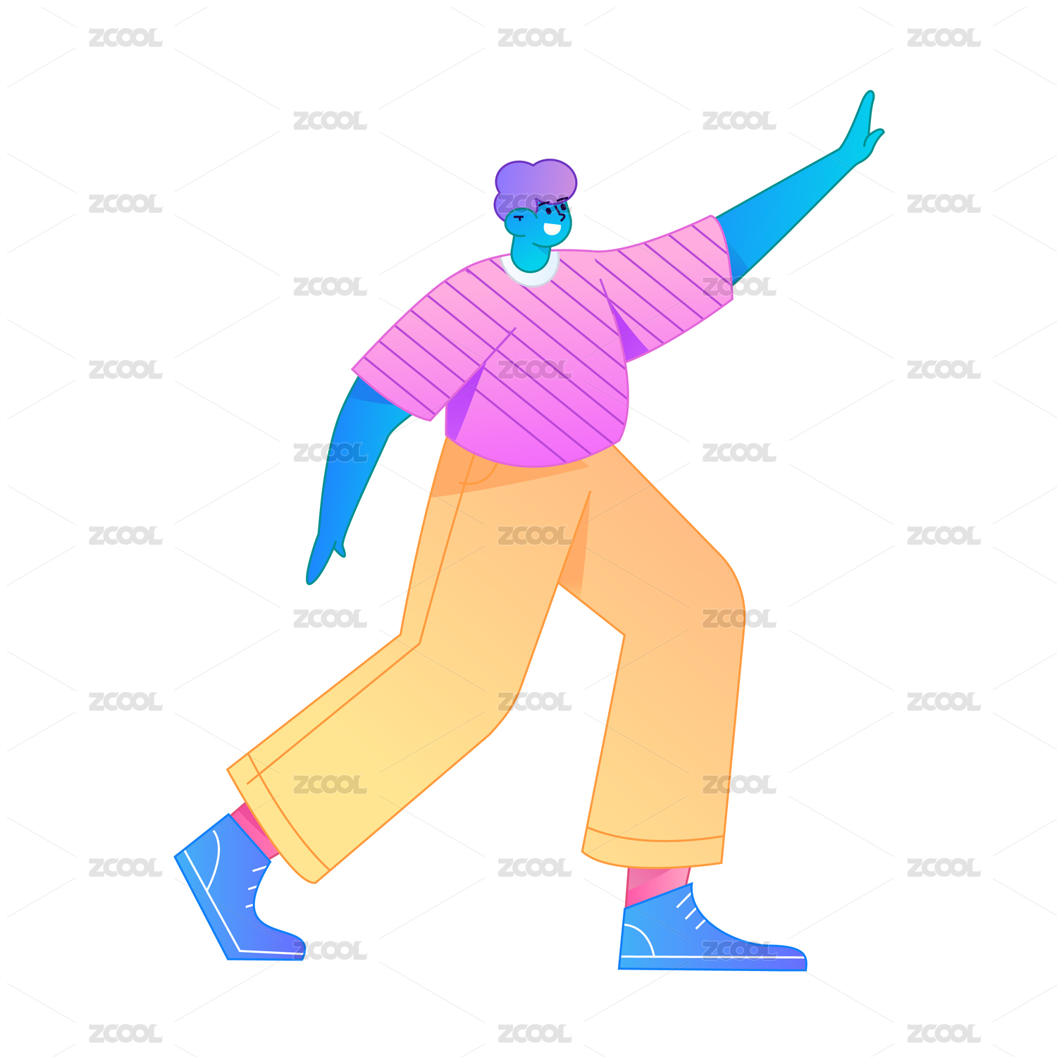 人物站姿肢体动作自信展示矢量扁平渐变插画