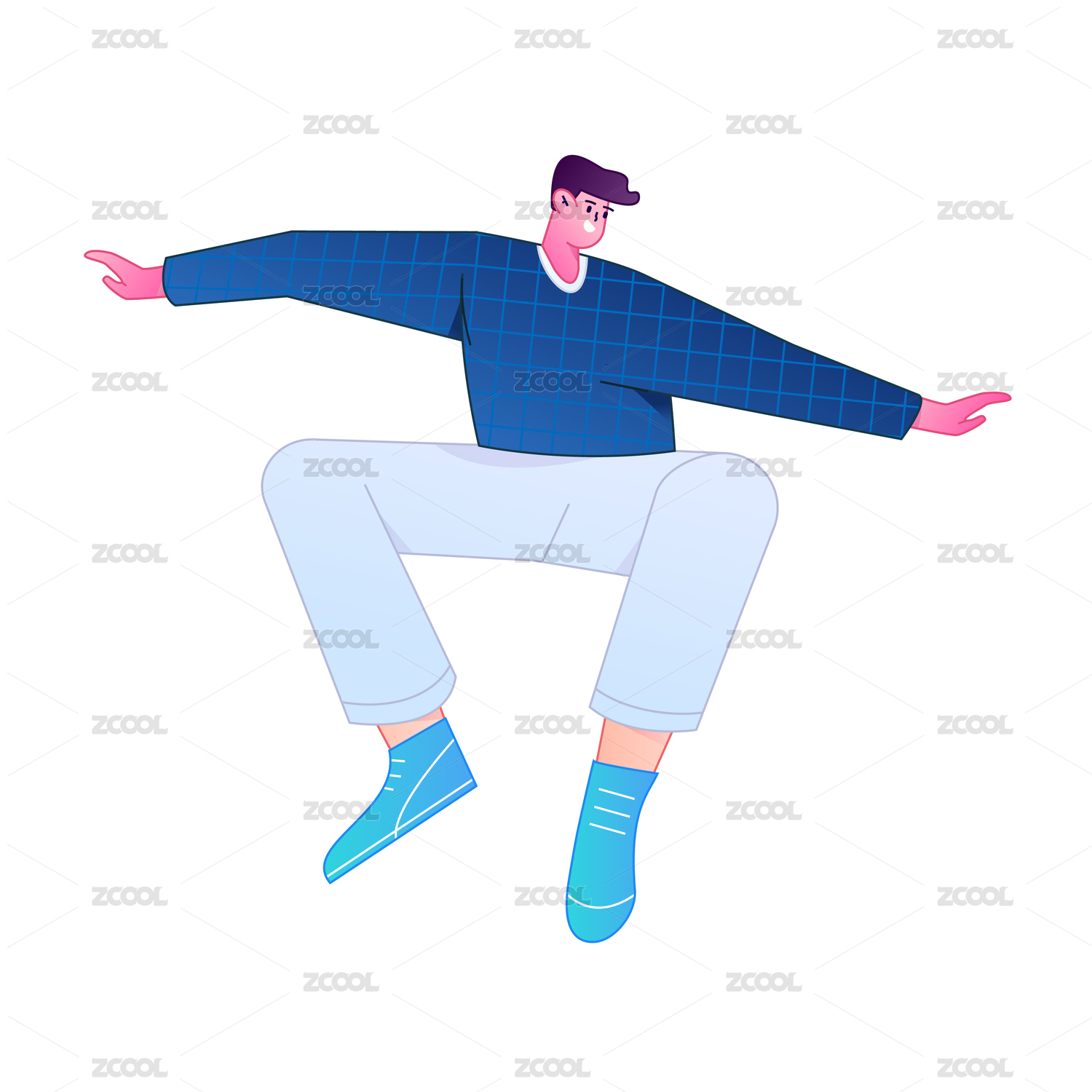 人物飞翔悬浮动作矢量扁平渐变插画