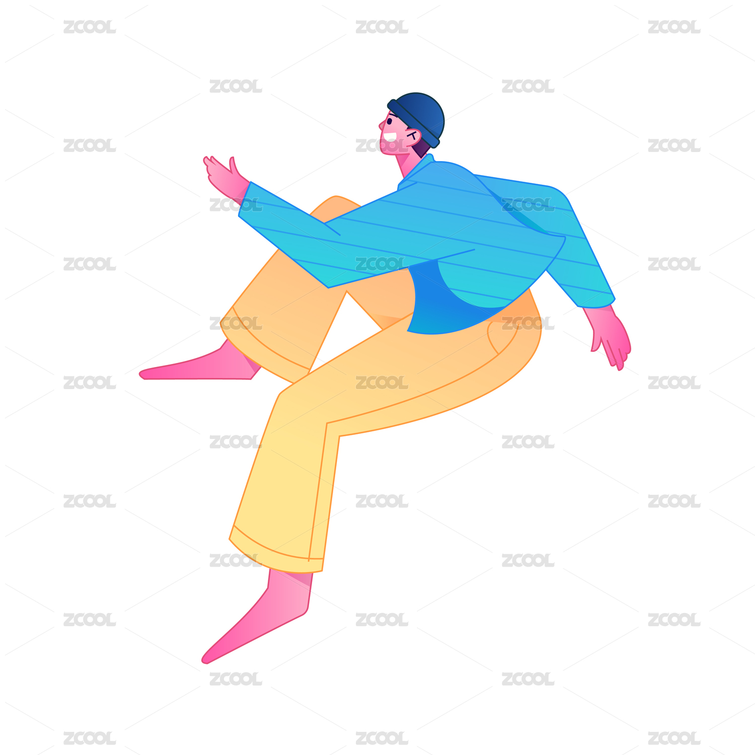 人物坐姿造型互联网矢量扁平渐变插画
