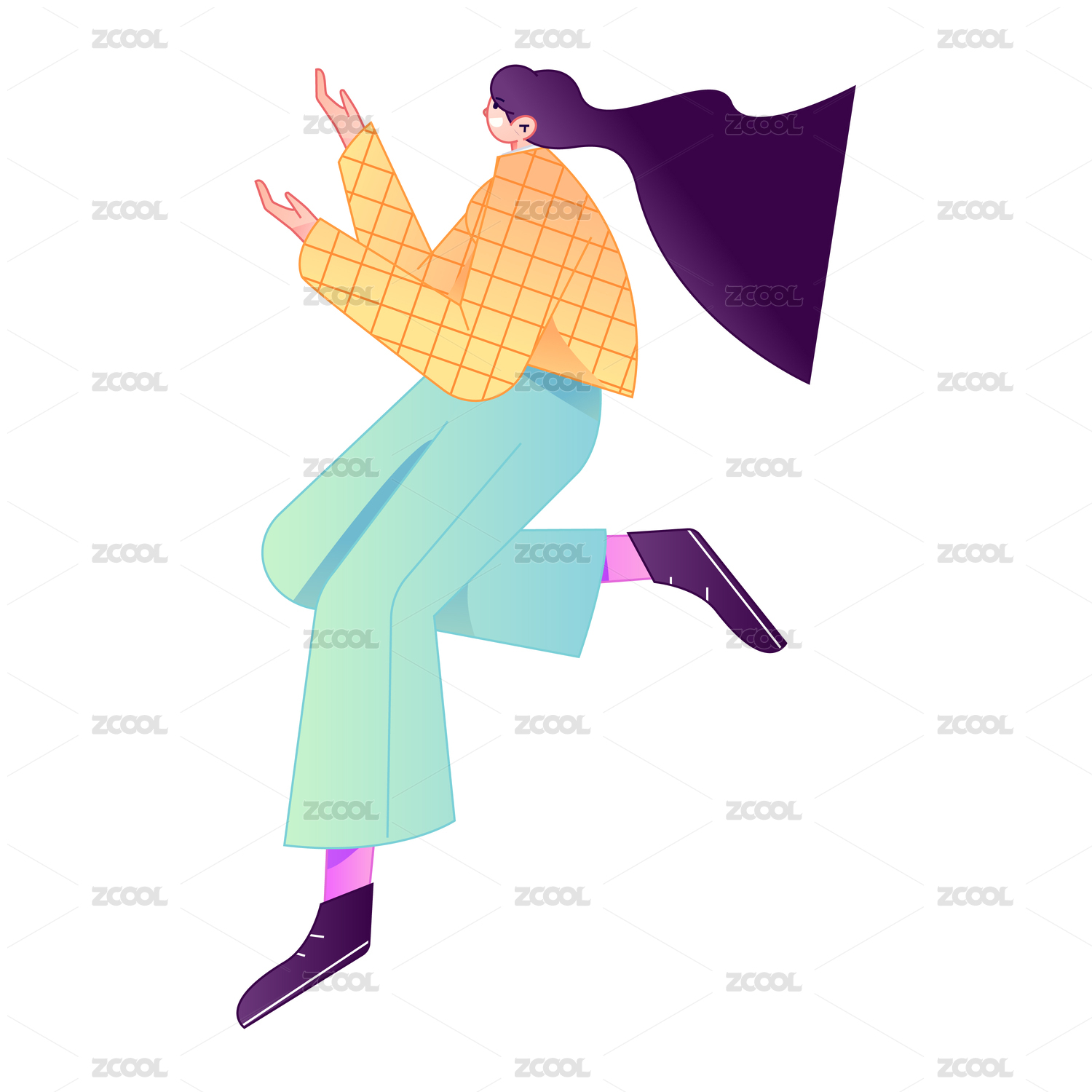 人物飞翔悬浮动作矢量扁平渐变插画