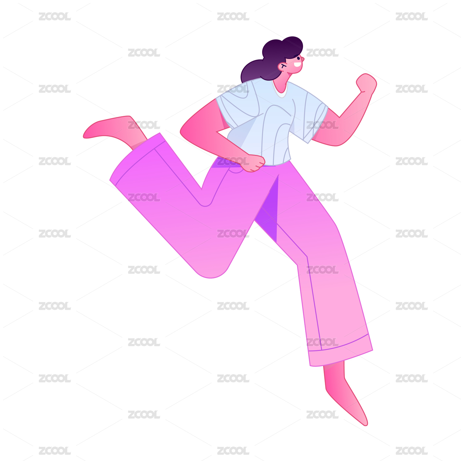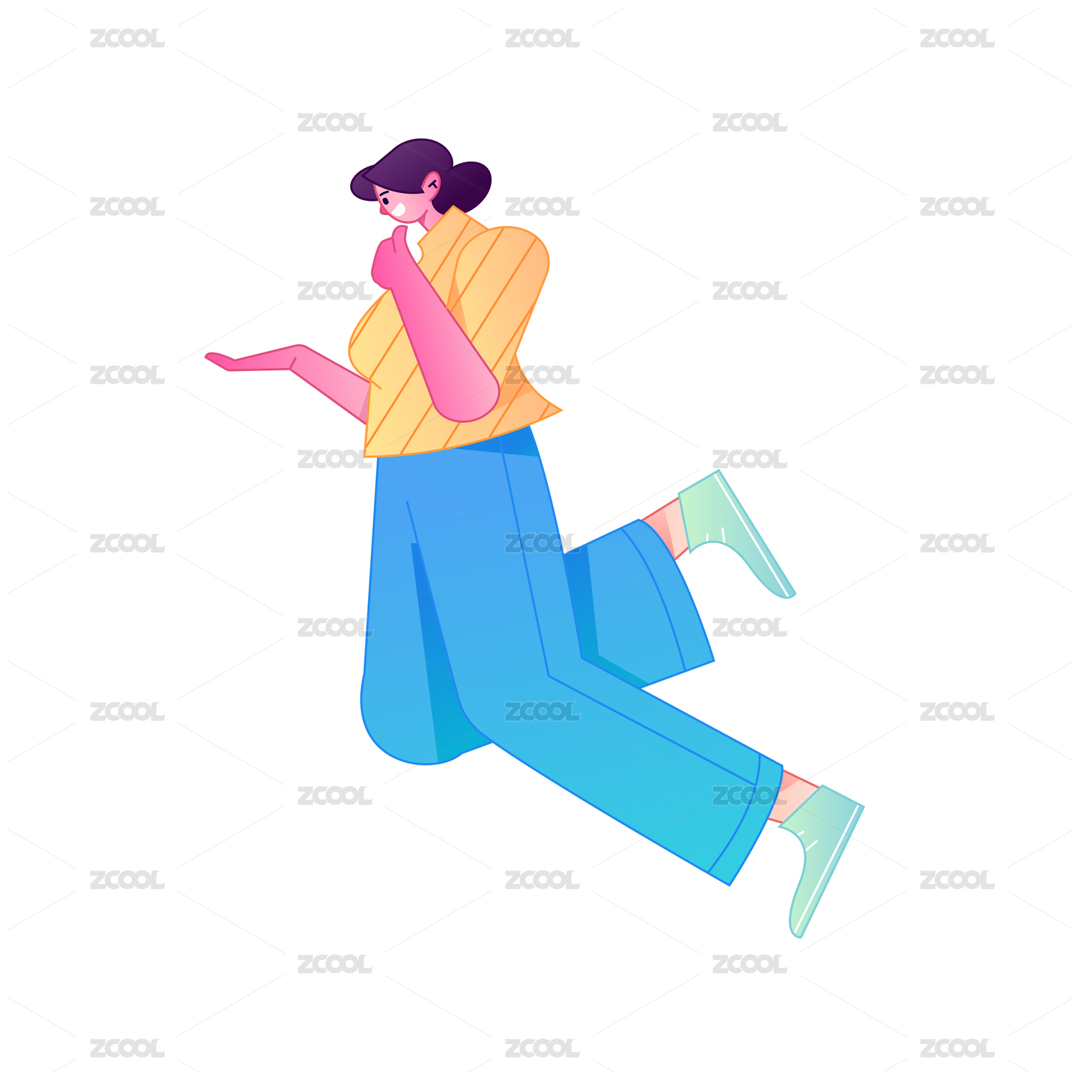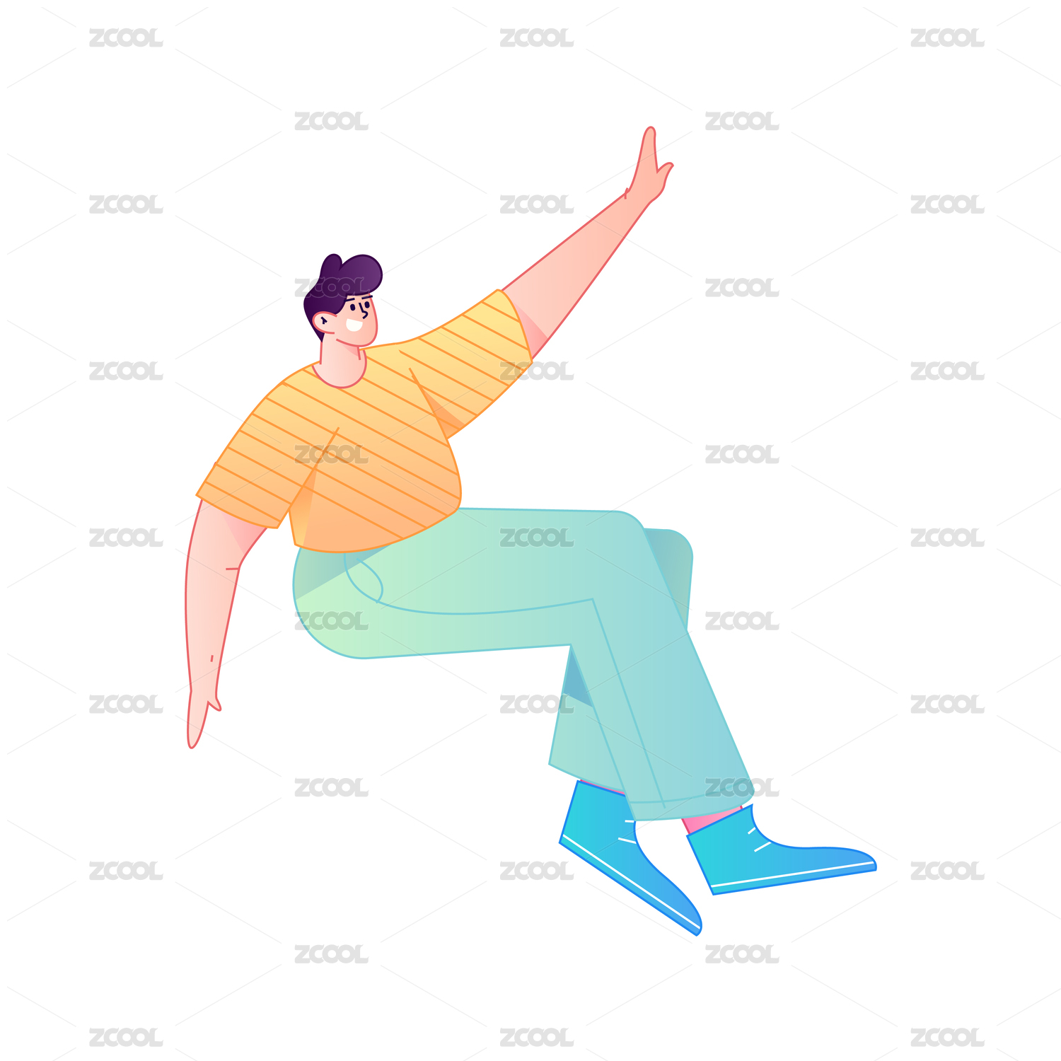 人物飞翔悬浮动作矢量扁平渐变插画