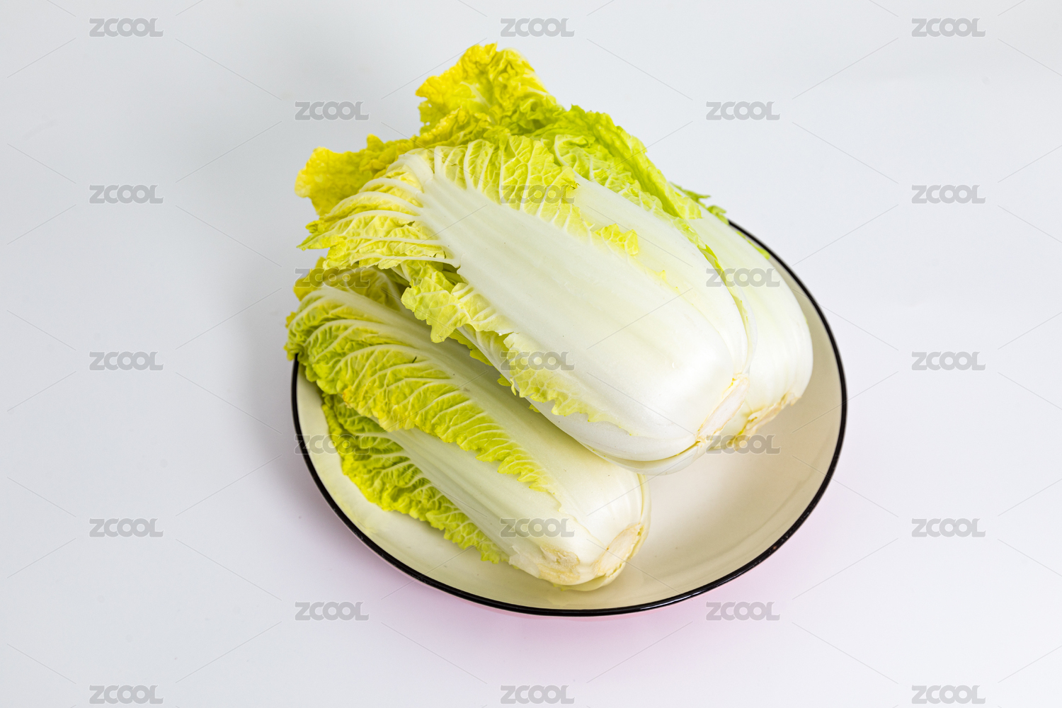 木圆盘里的新鲜蔬菜娃娃菜在白色背景上