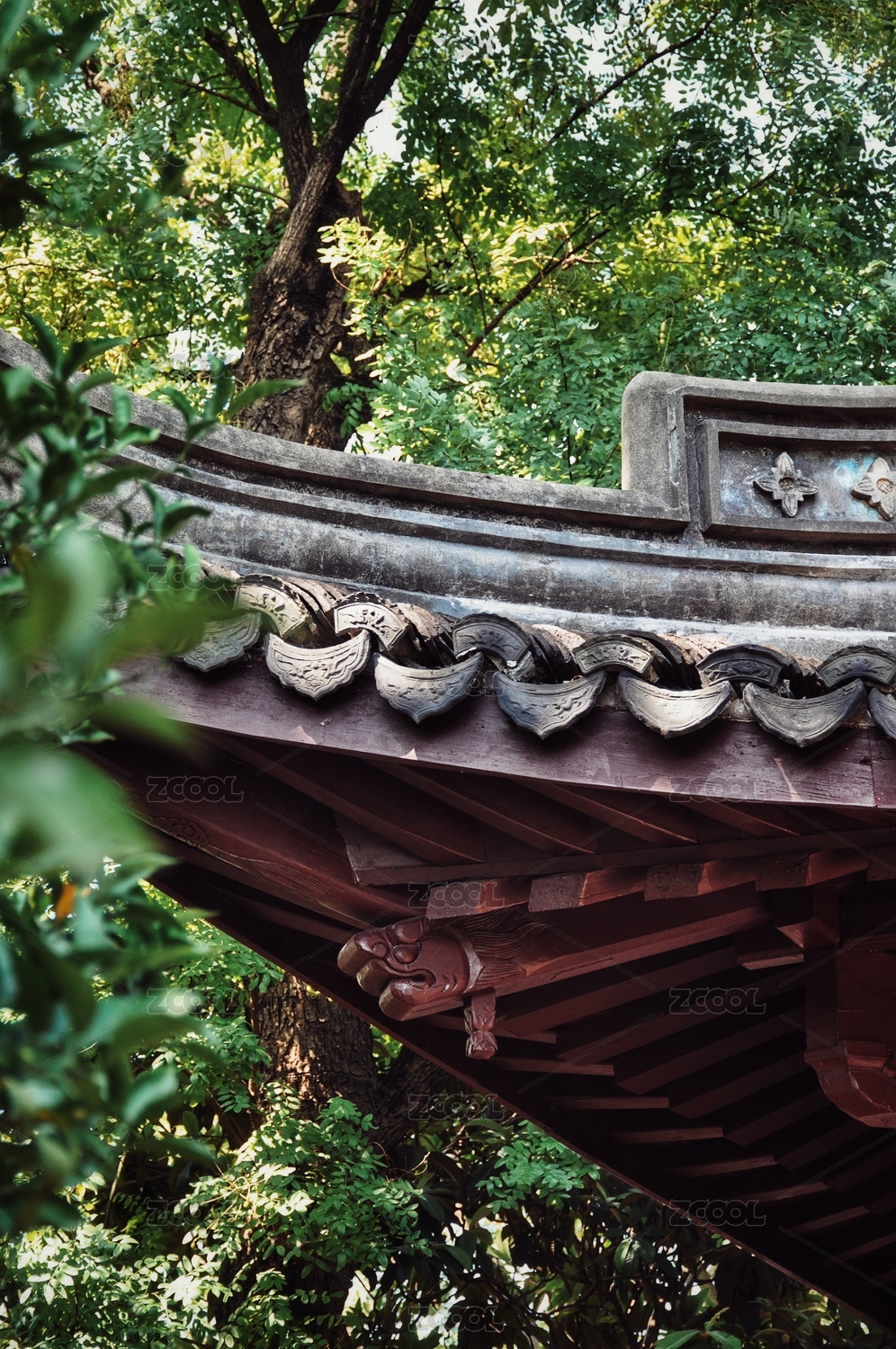 深圳仙湖植物园古建筑屋顶藤蔓绿植覆盖景观