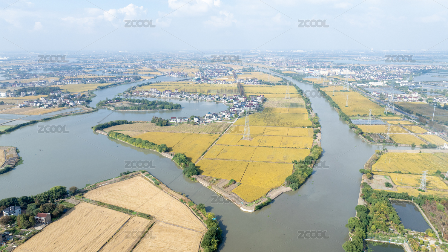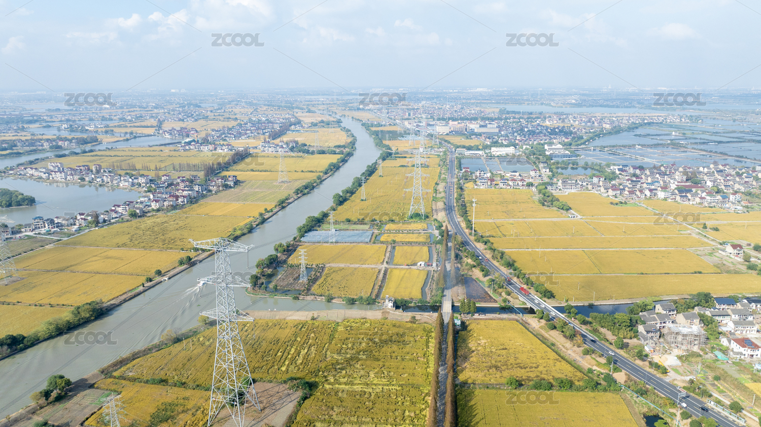 航拍,京杭大运河,金秋,稻田,乡村,河流,农田,金色,风光,水乡
