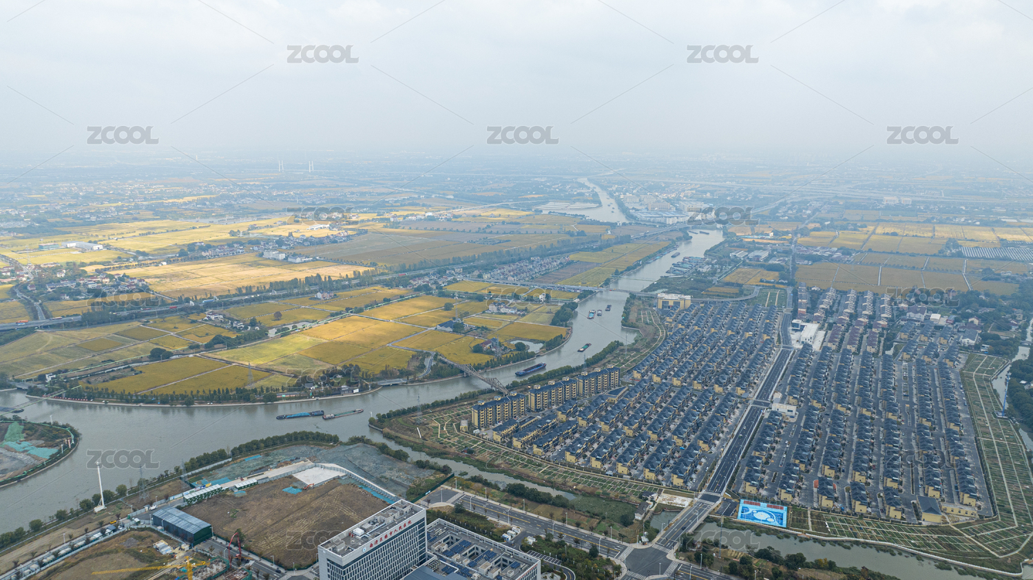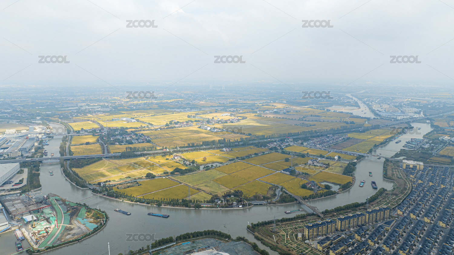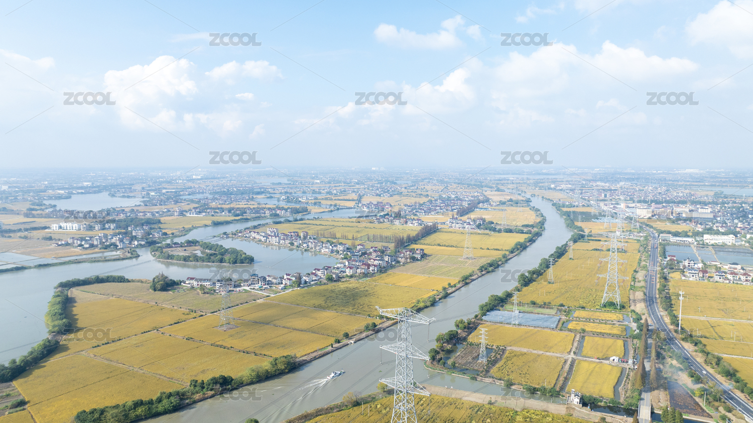航拍京杭大运江苏吴江区王江泾镇金色农田