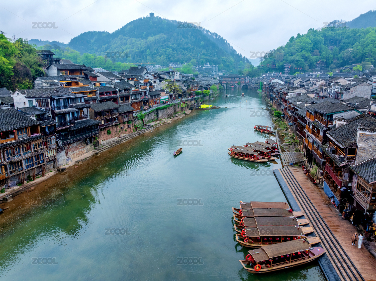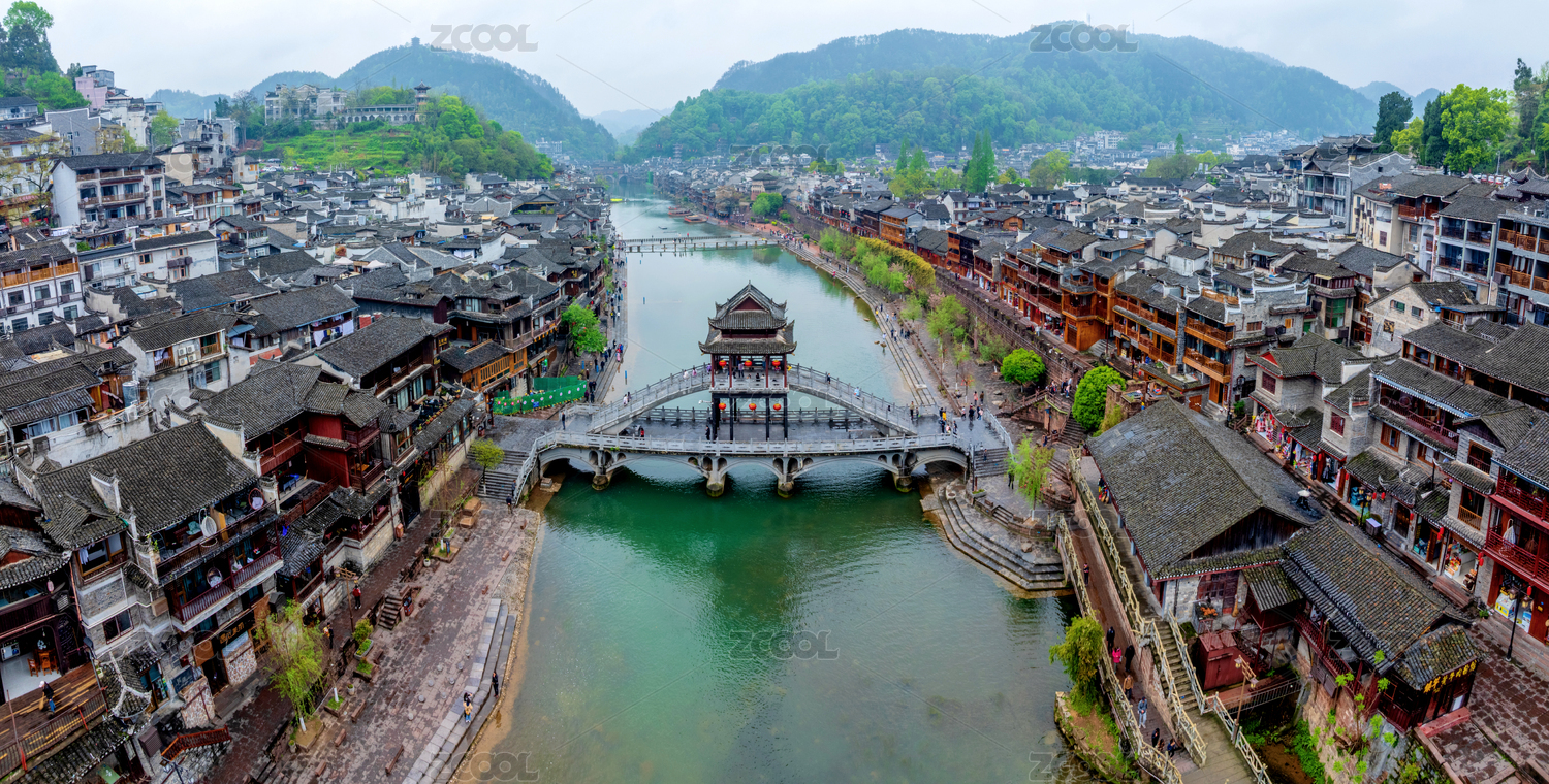 湖南湘西凤凰古城,古镇水乡航拍全景