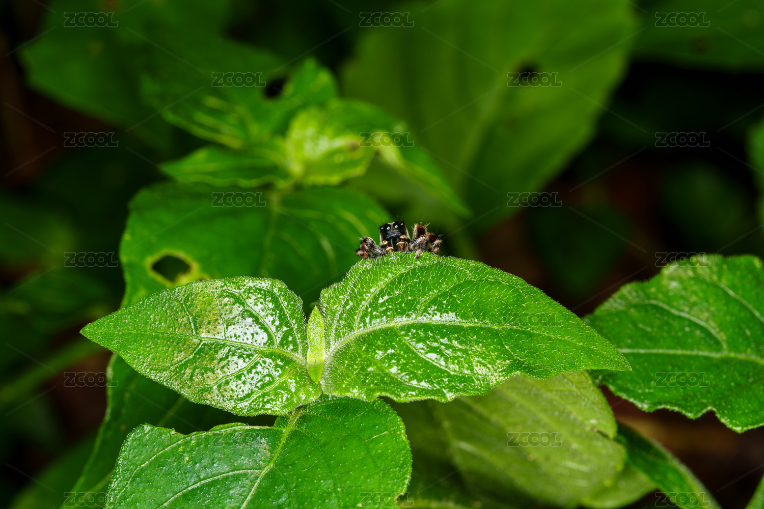 绿叶上的小跳蛛特写