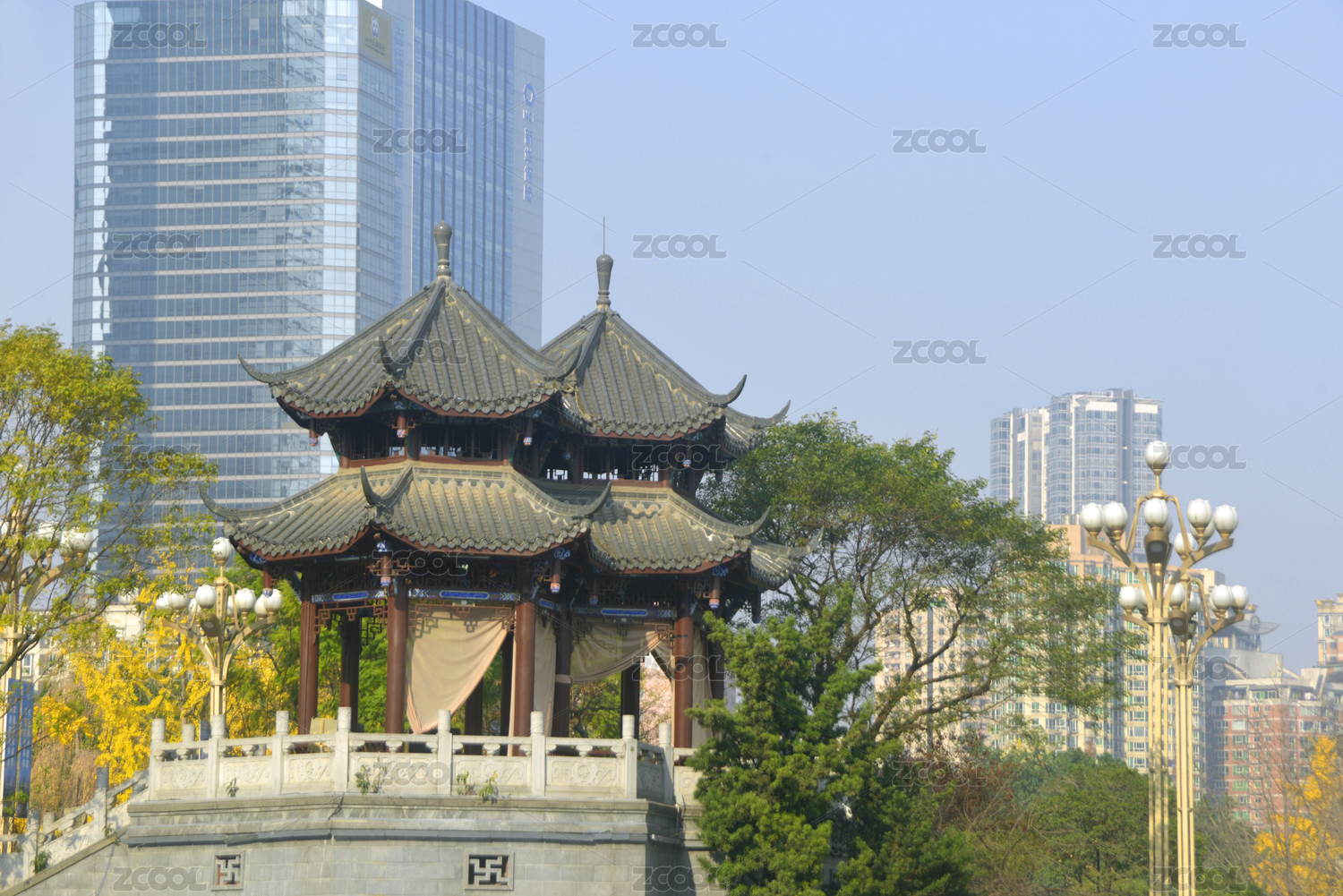福建省福州西禅古寺的古阁楼和旁边的高楼