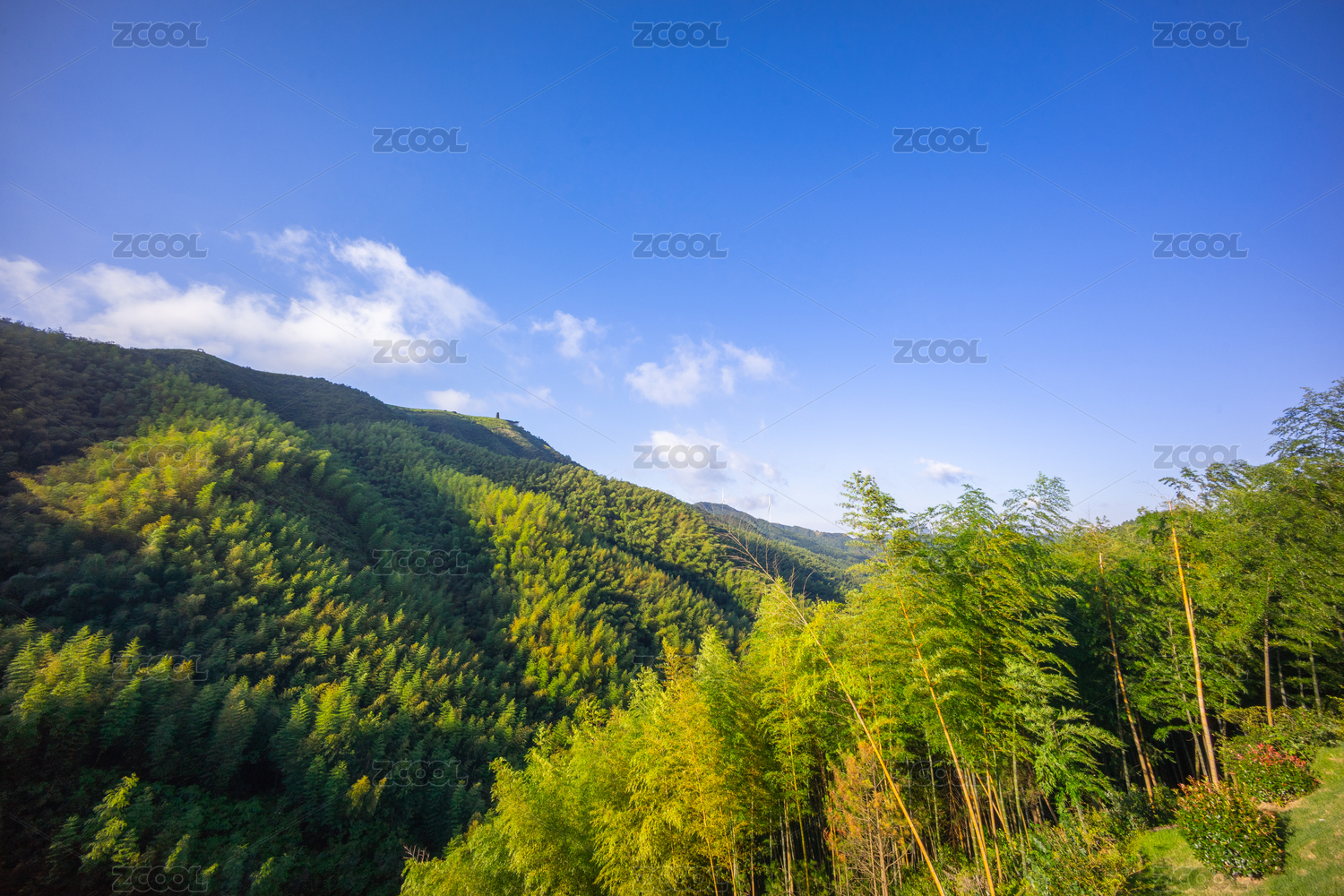 晴天的中国浙江莫干山竹林与群山