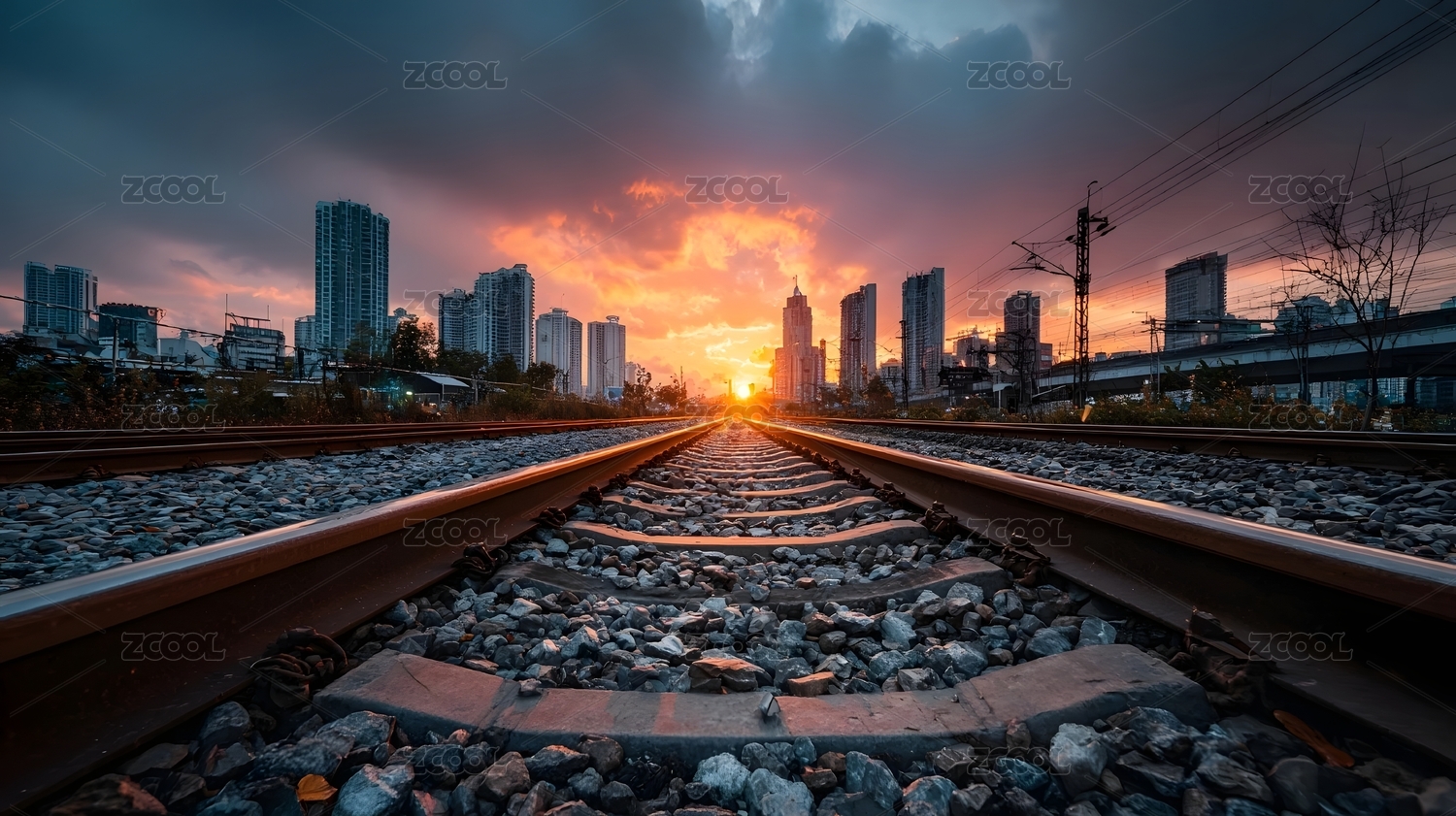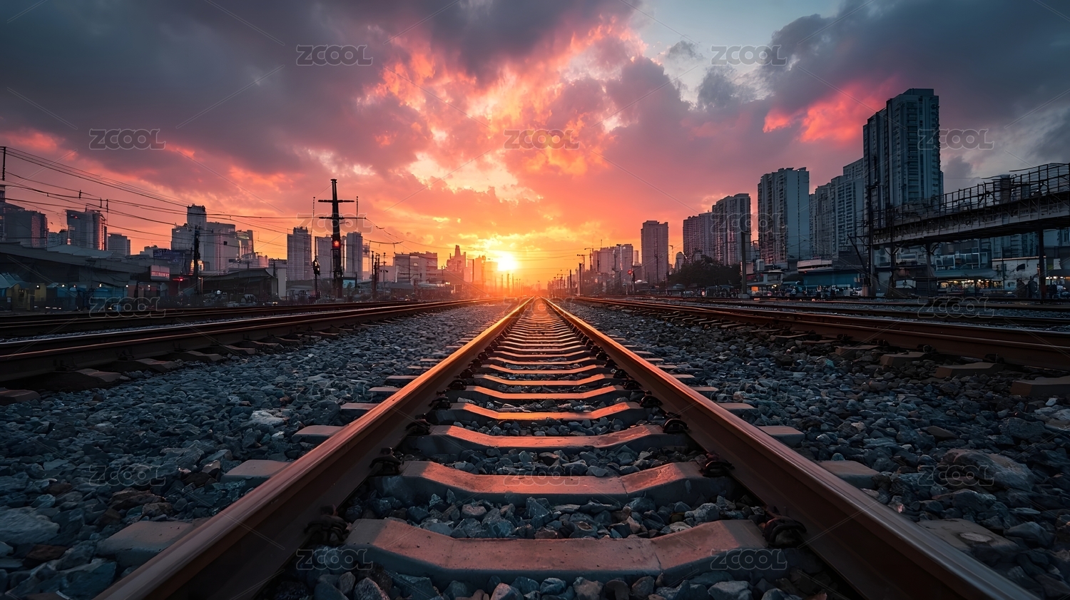 铁轨日落城市