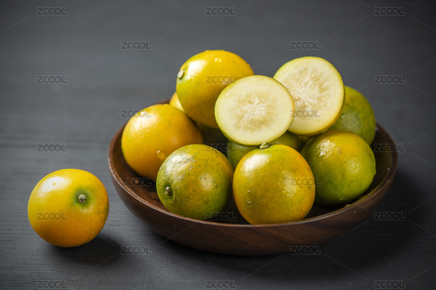 一盘脆蜜金柑摆放在桌面上特写