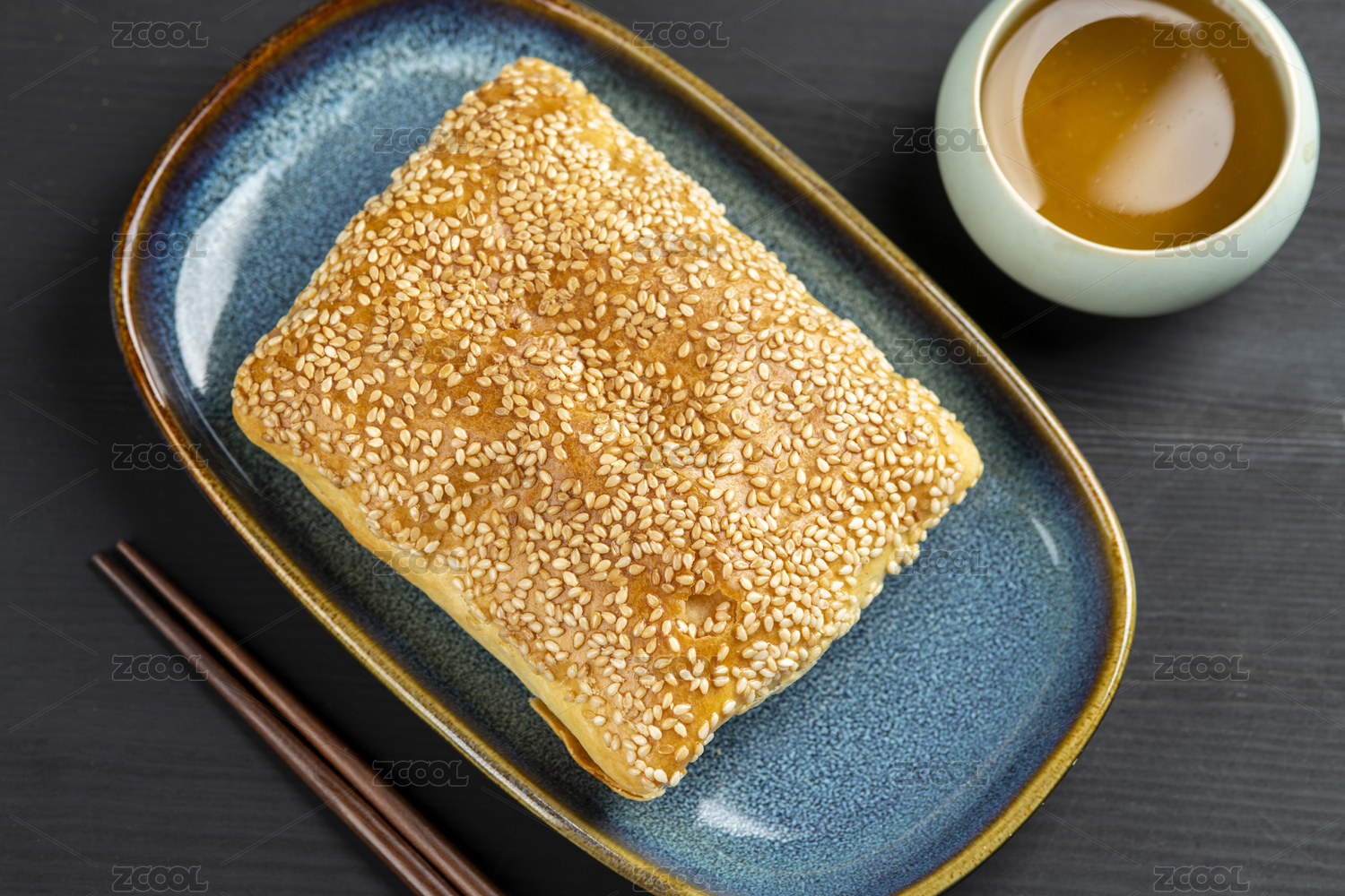 特色面食芝麻烧饼油酥烧饼摆放在黑色背景上