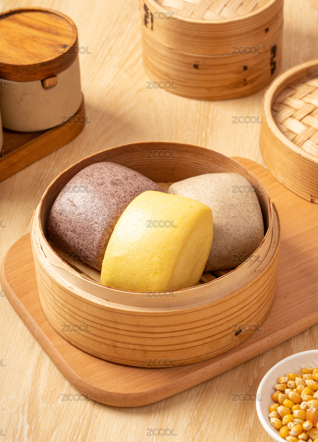 玉米面馒头紫米馒头白馒头黄色莫兰迪背景