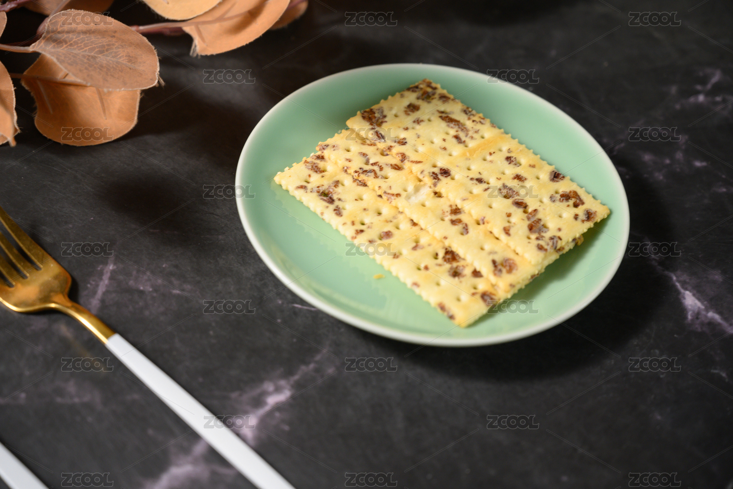 桌面上的盘子里的美味可口的黑麦苏打饼
