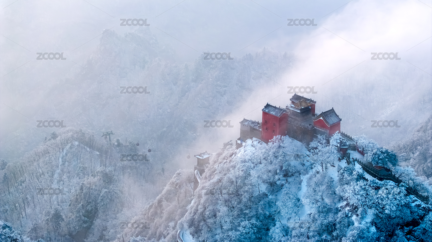 武当山,金顶,景区,自然,风景,背景,航拍,大气,云海,冬天