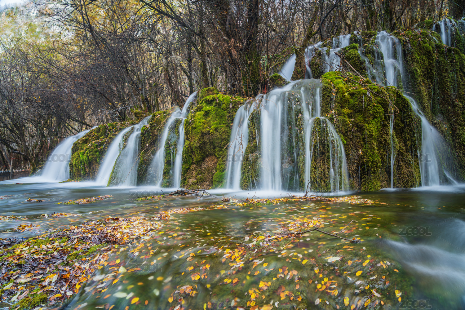 九寨沟,箭竹海,瀑布,山水,自然风光,秋色,溪流,森林,秋季,树木
