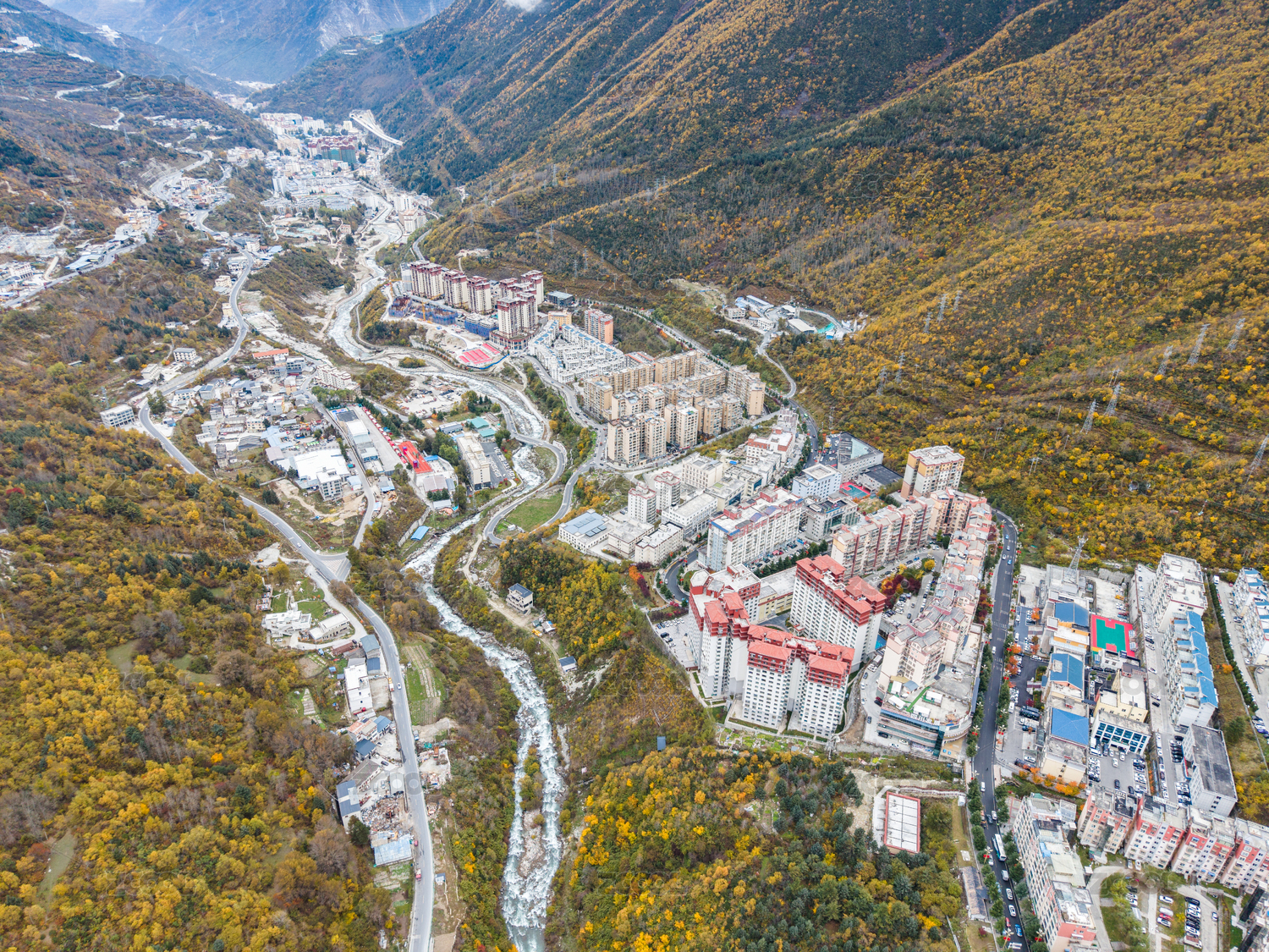 中国四川省甘孜州小金县四姑娘山镇全景