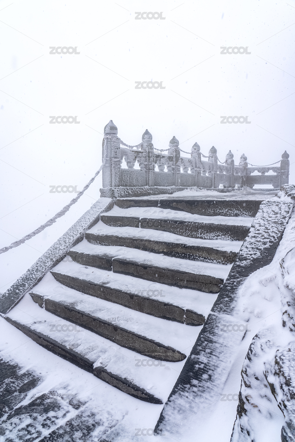 寒冷冬季大雪栈道栏杆