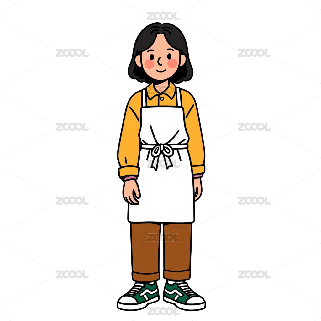 手绘Q版卡通穿背带裤手叉腰自信站立的女孩