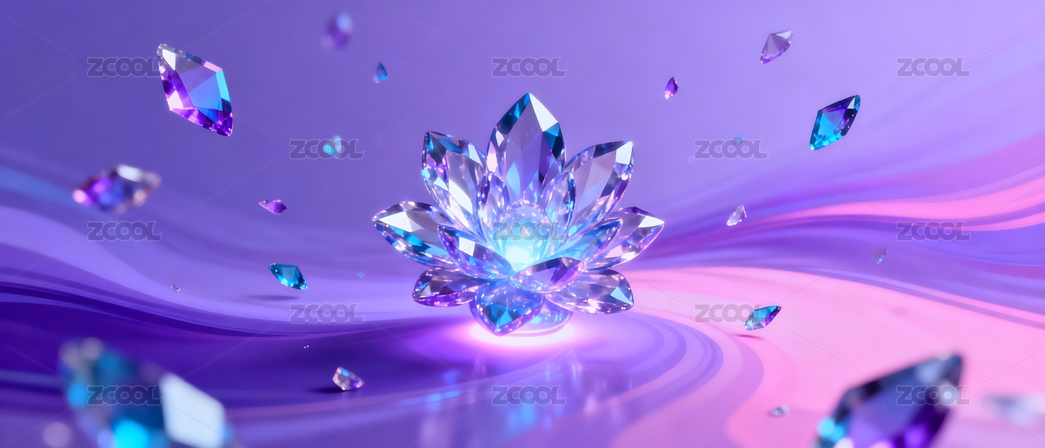 水晶莲花在渐变背景中闪耀