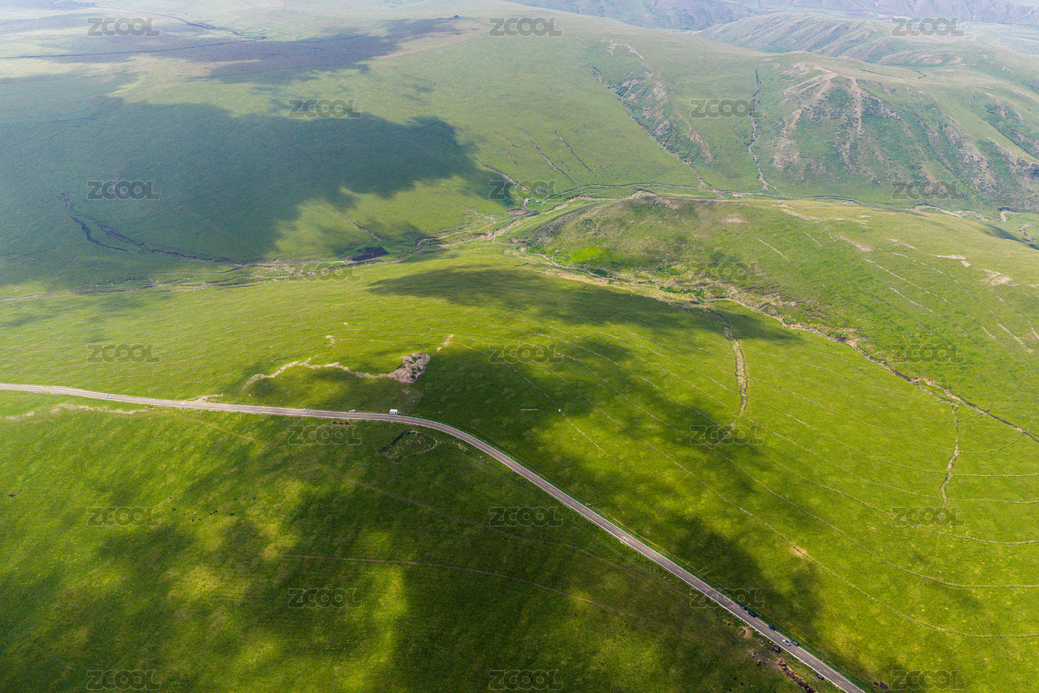 绿色草原公路航拍