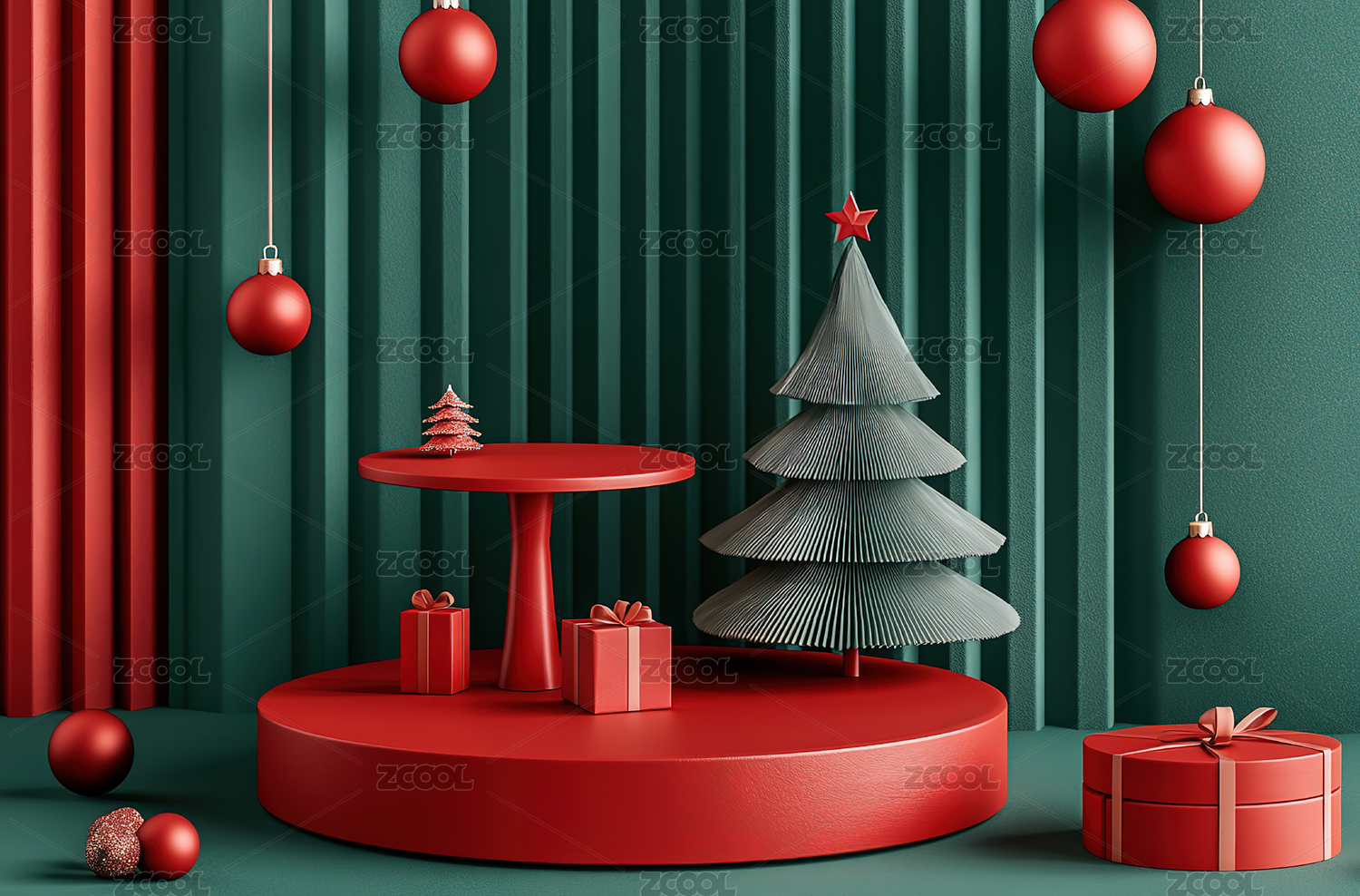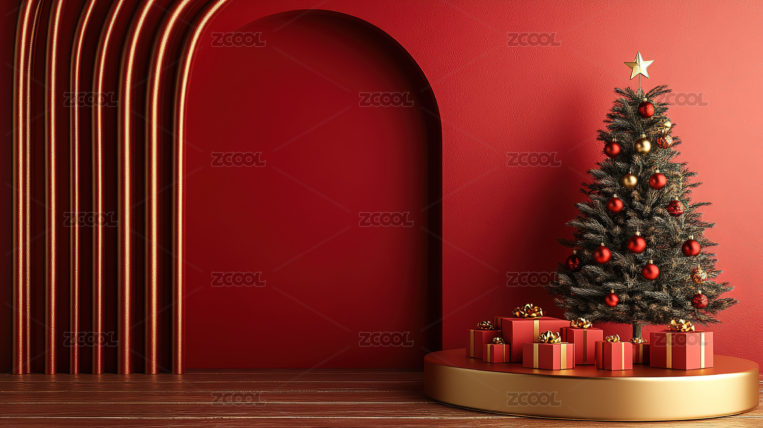 圣诞树,节日装饰,节日氛围,节日主题,节日元素,节日灯光,礼物盒,装饰品,视觉构图,节日场景