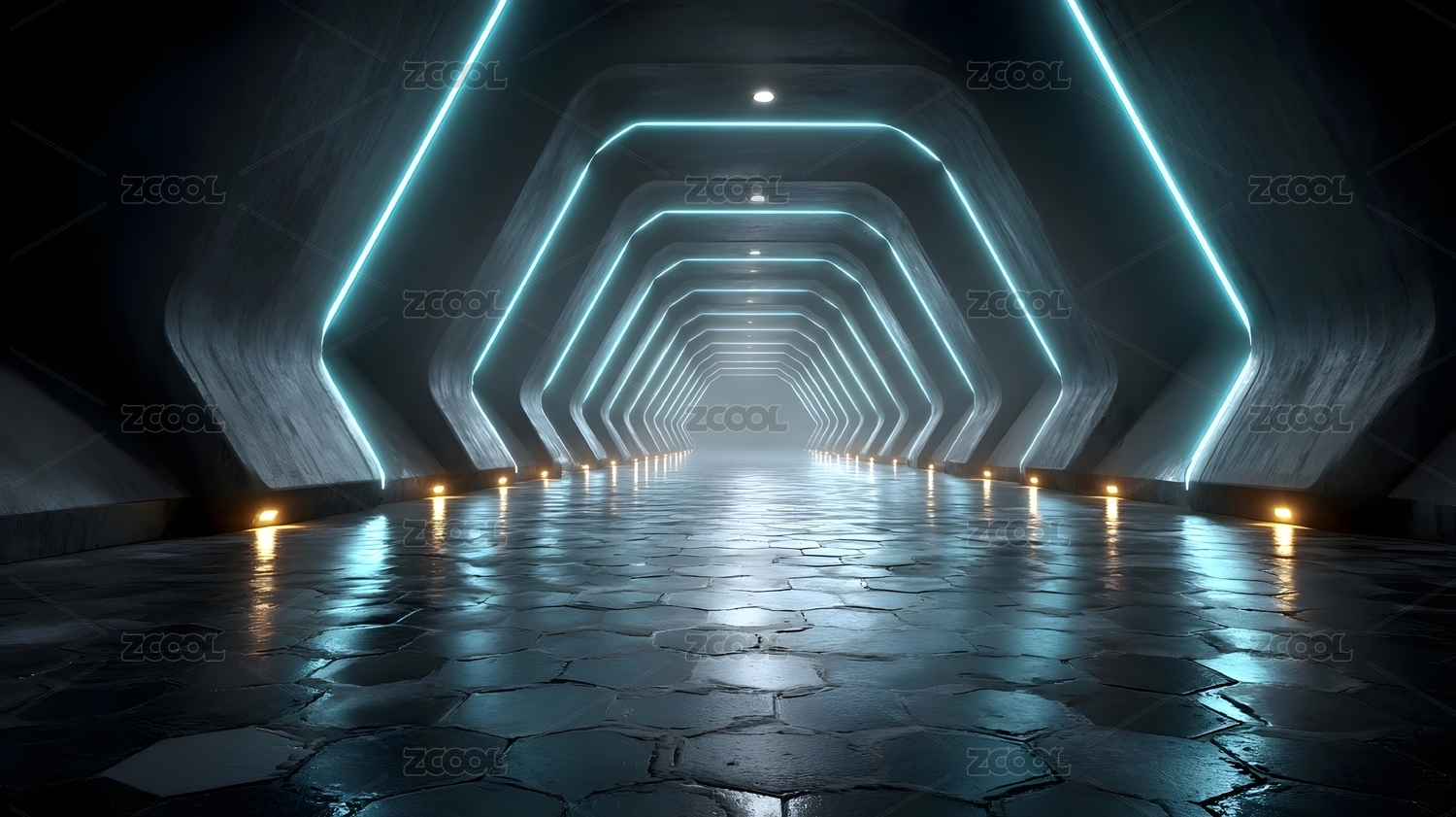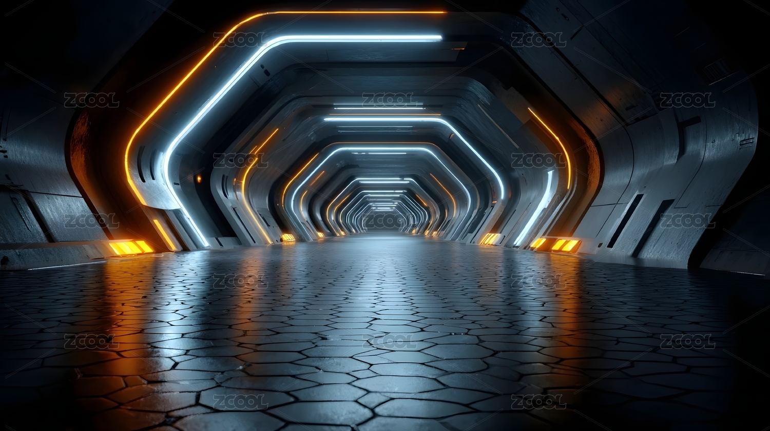 蓝橙霓虹六边形走廊