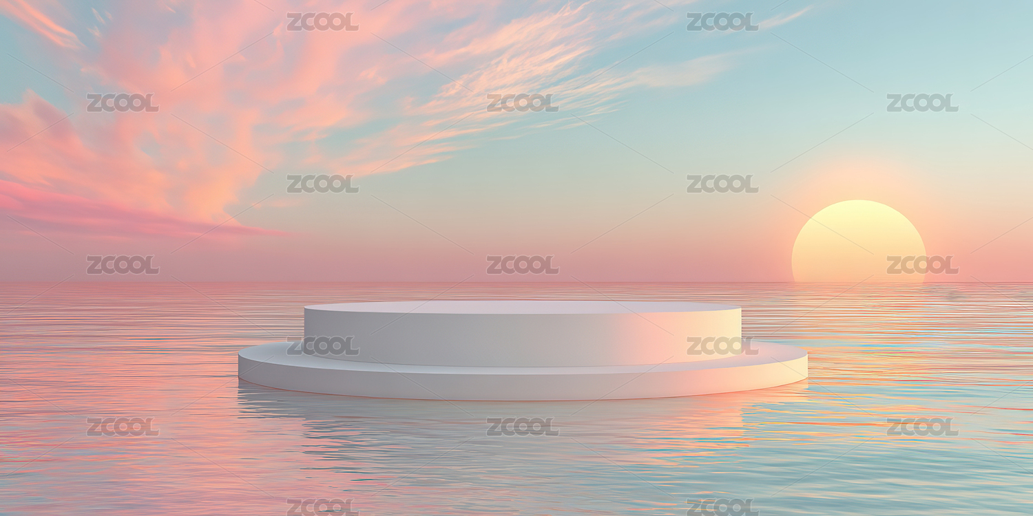 日落水面的圆形平台