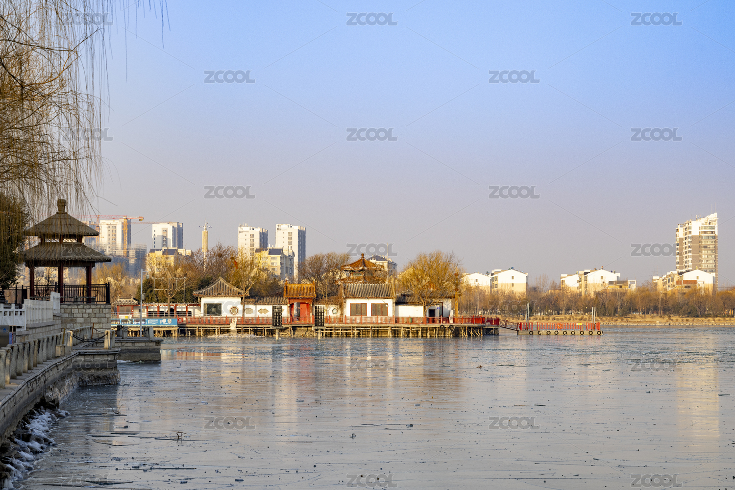 渭南,沋河公园,河流,湭河,结冰,冬季,冬天,临渭区,城市风光,建筑物
