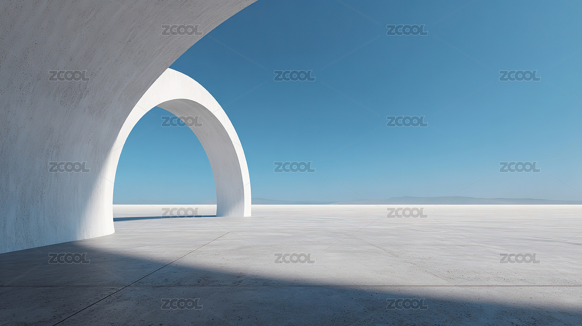 白色拱门与蓝天大海的简洁景观