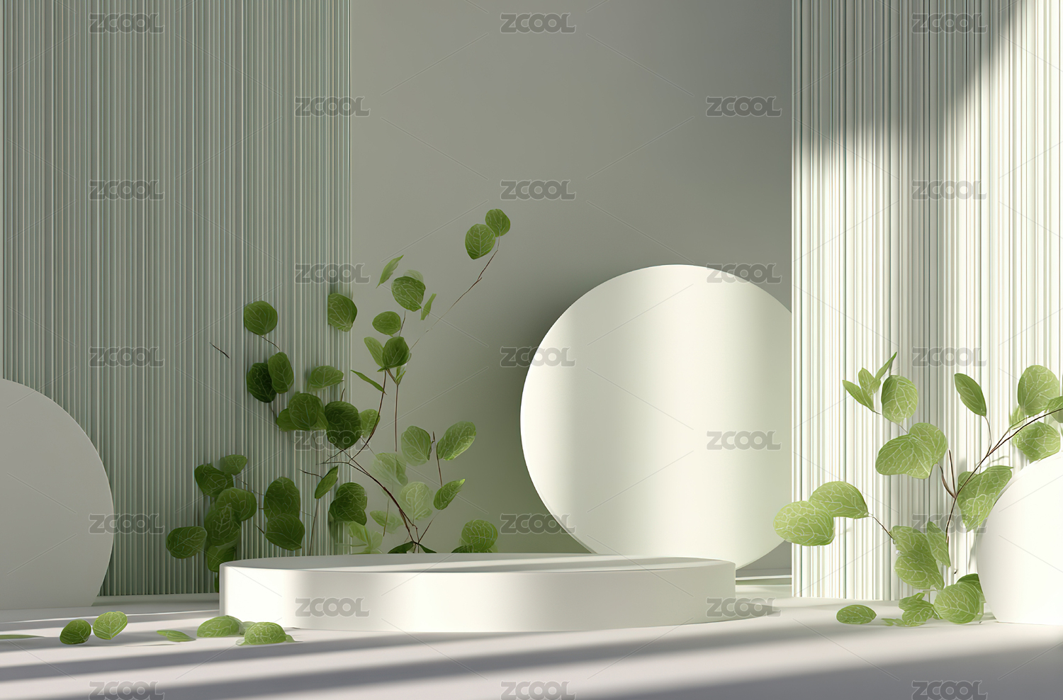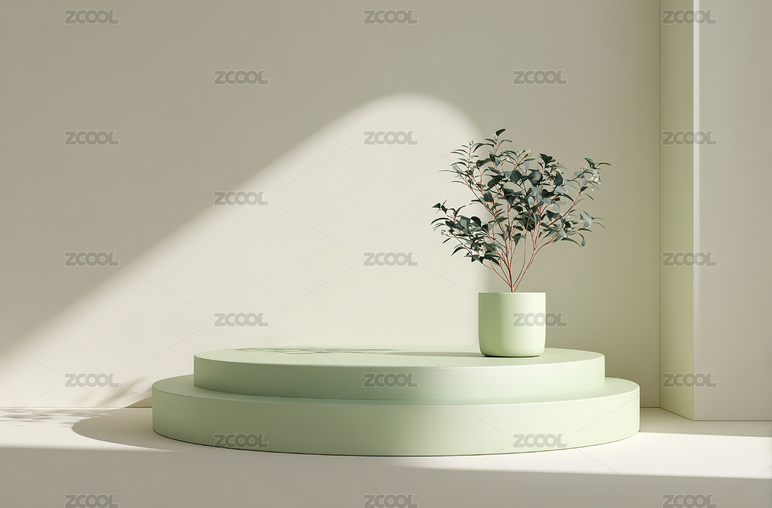 白色展台绿植光影简约室内场景图