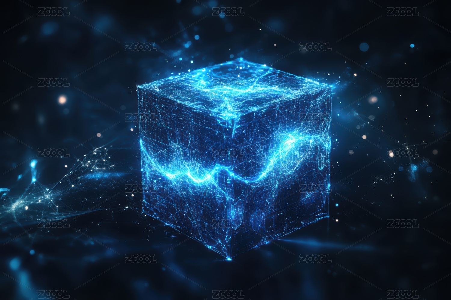 蓝色粒子立方体特效图