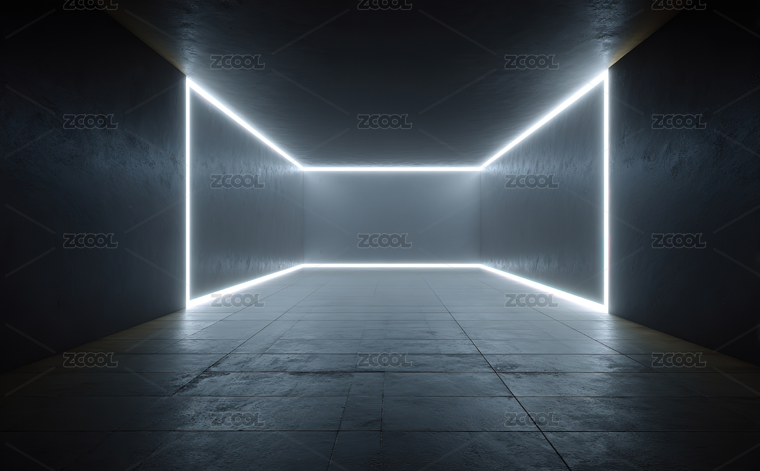隧道,发光,蓝色,线条,反射,地面,空间,未来感,科技感,光影