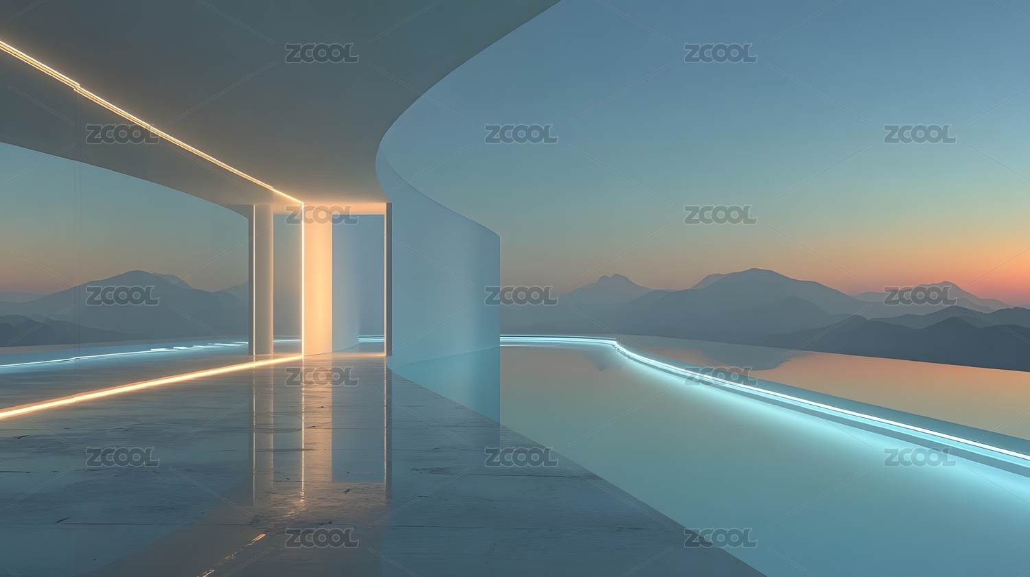 蓝色,反射,空间,曲线,现代,简洁,结构,设计,宁静,层次